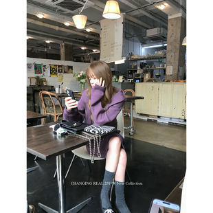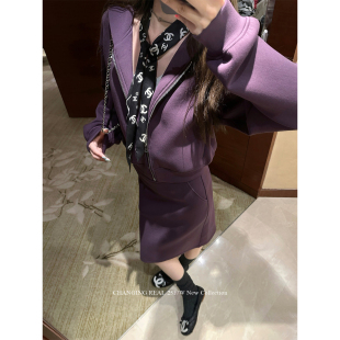 慵懒紫色连帽卫衣外套女包臀卫裙套装 柔雾烟紫 REAL CHANGING