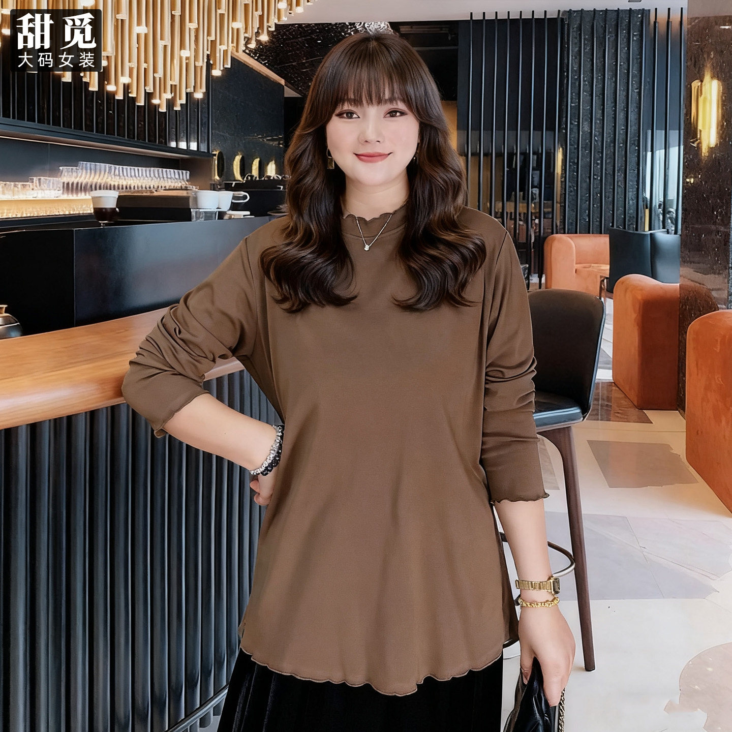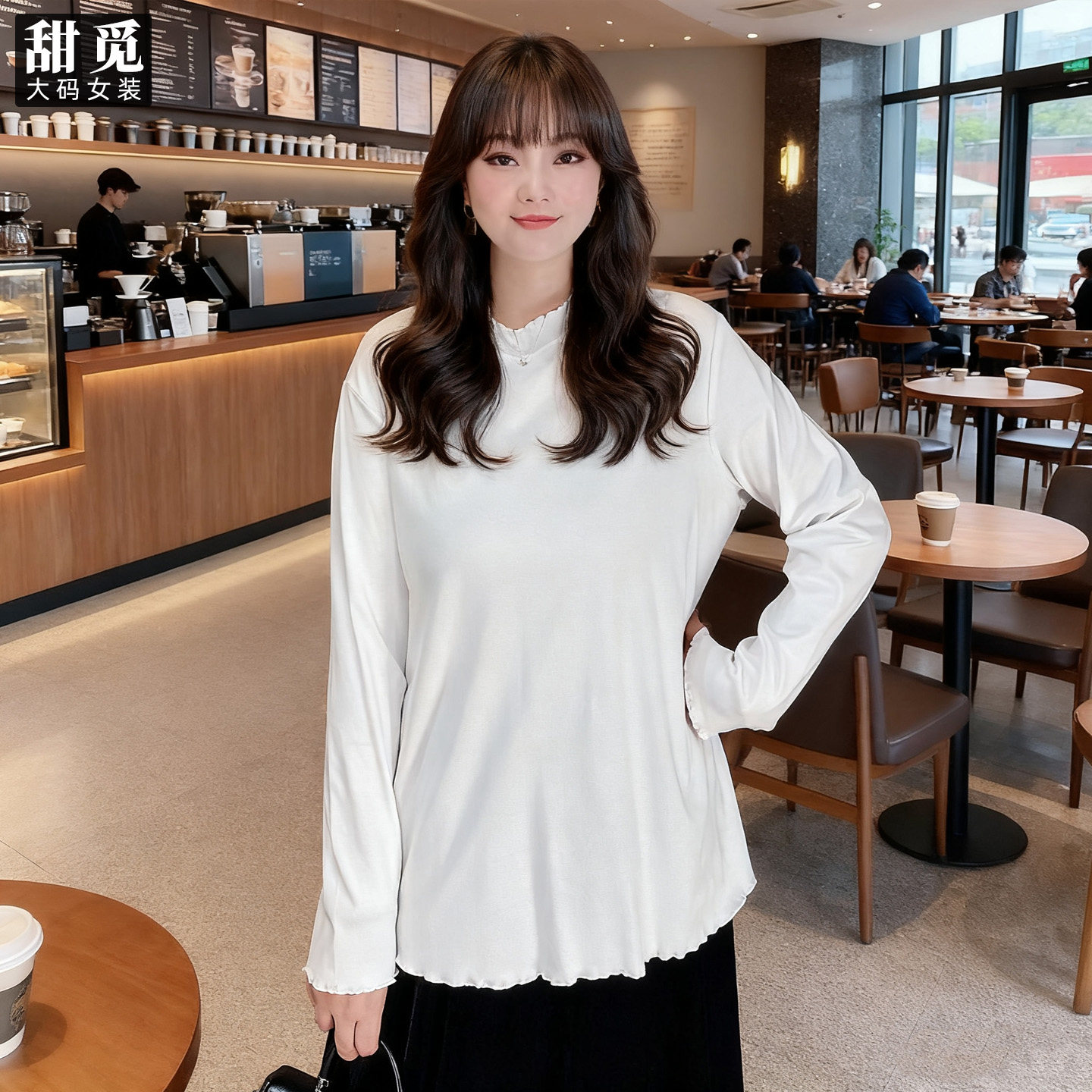 胖mm270斤宽松舒适半高领保暖打底衫 2025秋装 T恤 女装 甜觅特大码