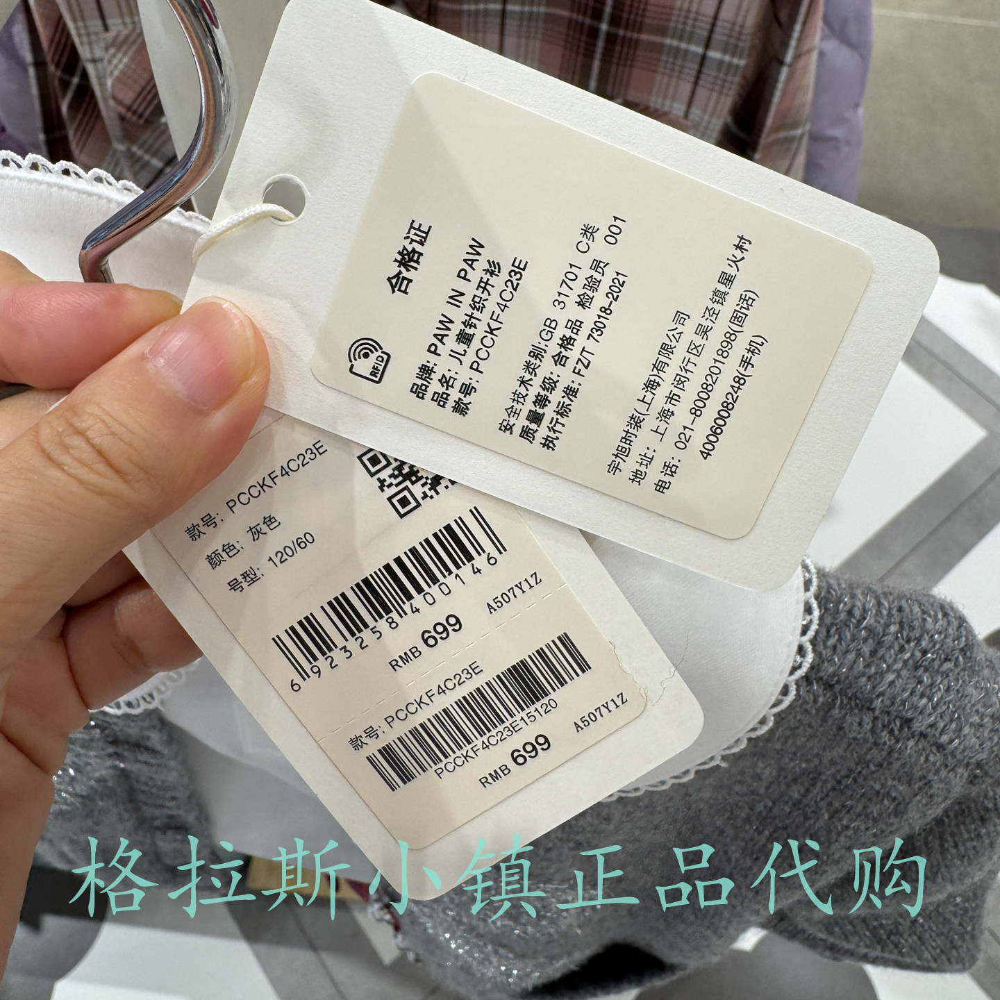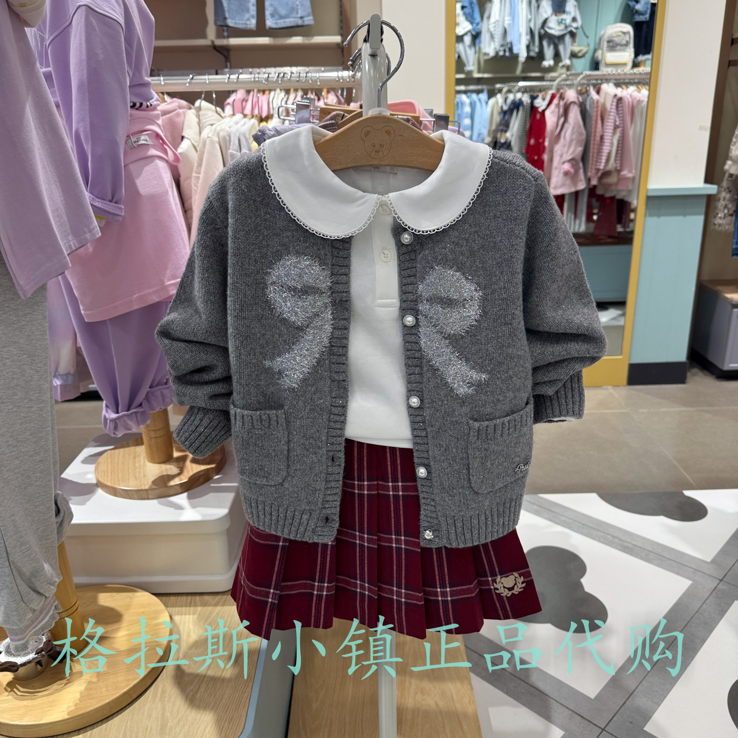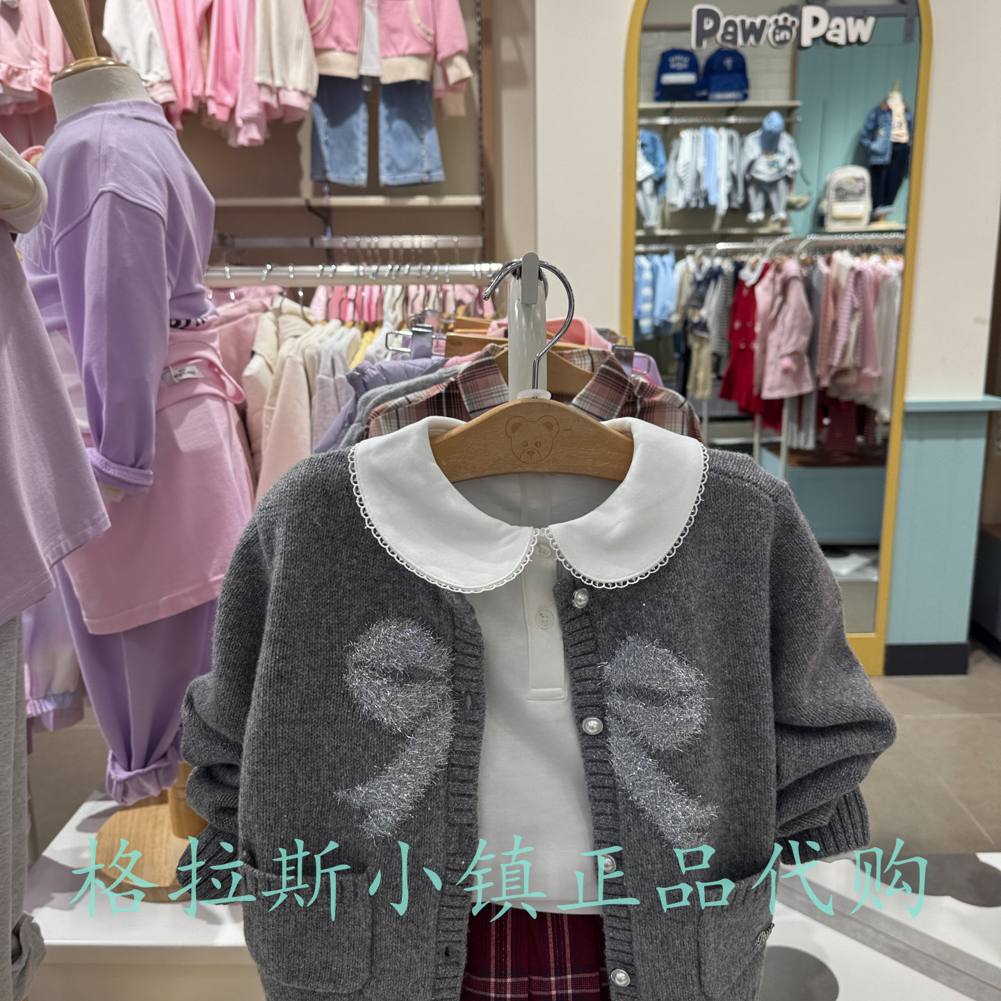 女童圆领绵羊毛开衫 25年冬新款 PCCKF4C23E 专柜正品 pawinpaw童装