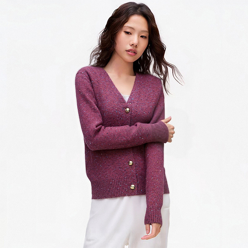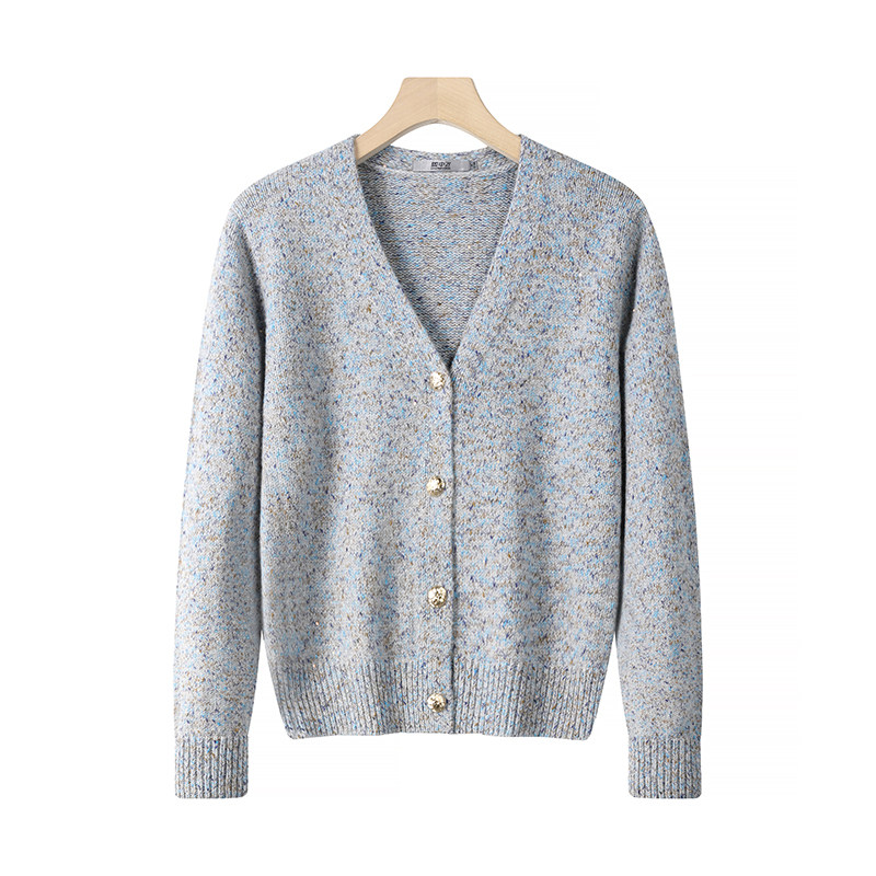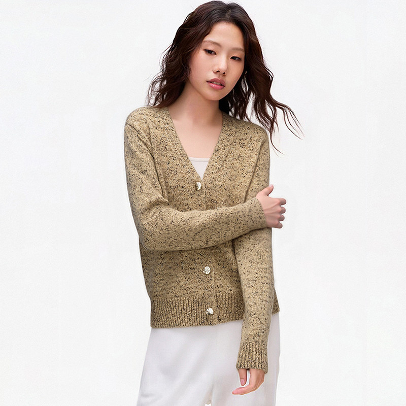 保暖舒适女羊毛衫 V领针织开衫 软黄金绵羊毛时尚 雪中飞2025秋新款