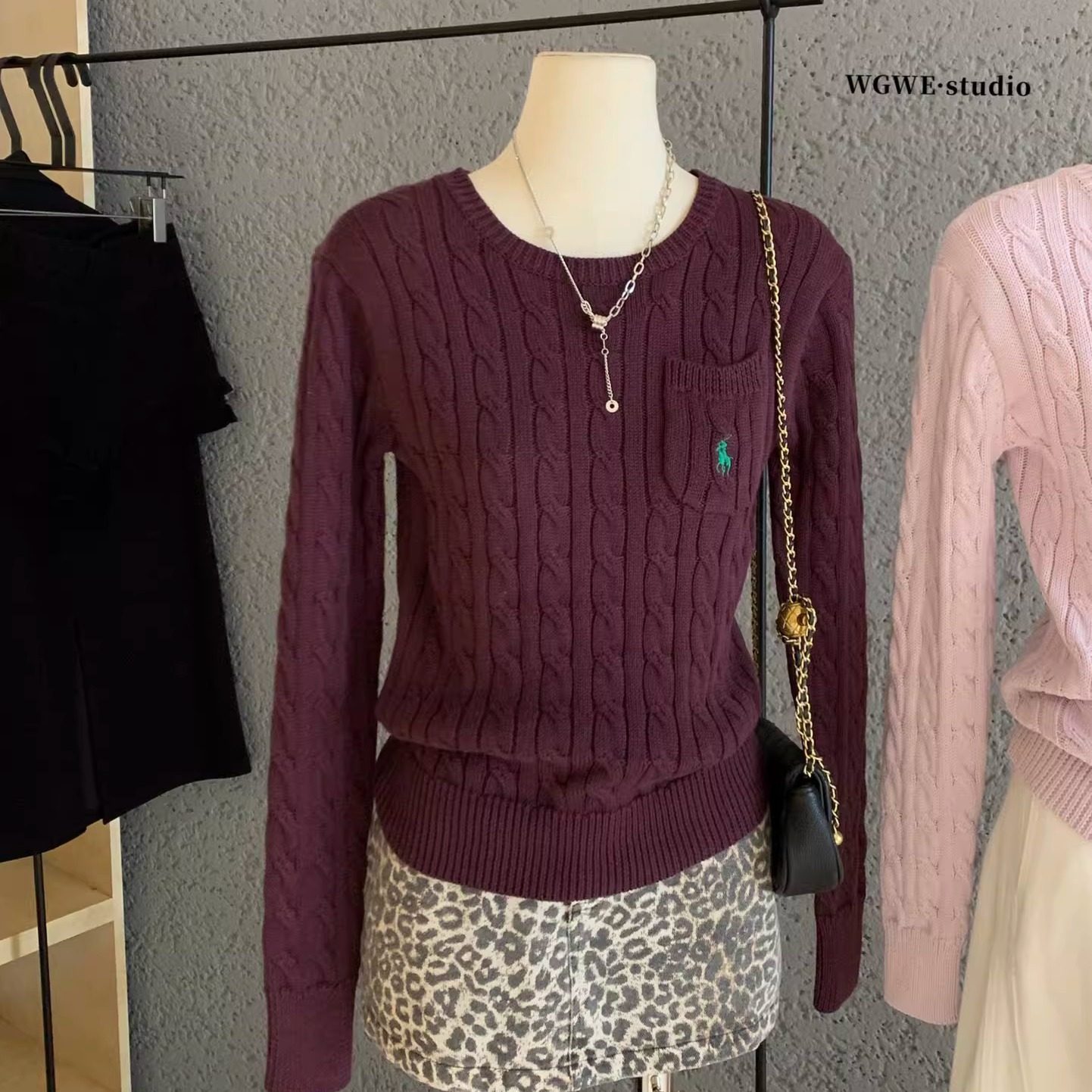 pusumede软糯亲肤 毛衣女气质温柔慵懒针织上衣 多巴胺仿貂毛开衫