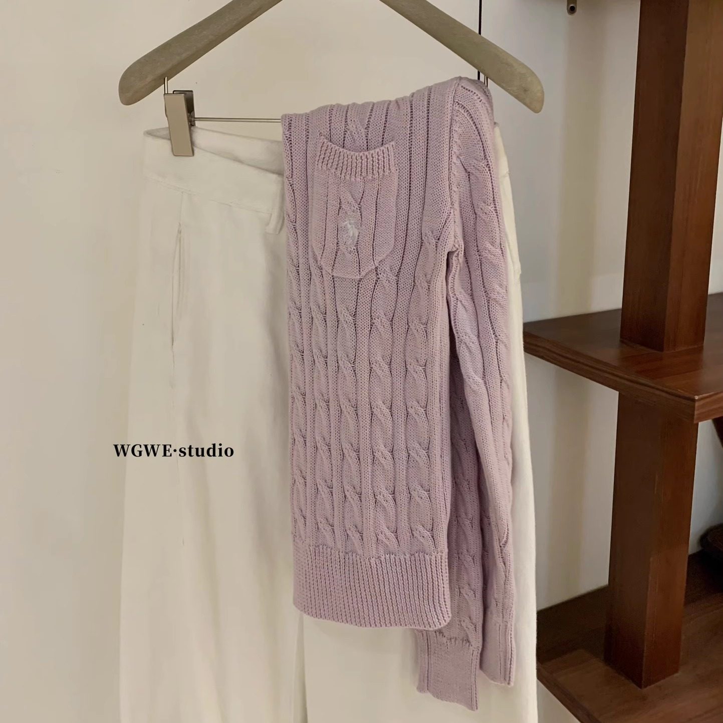 半高领设计感针织开衫 新款 洋气紫色立领方扣毛衣女2025年春季 韩版