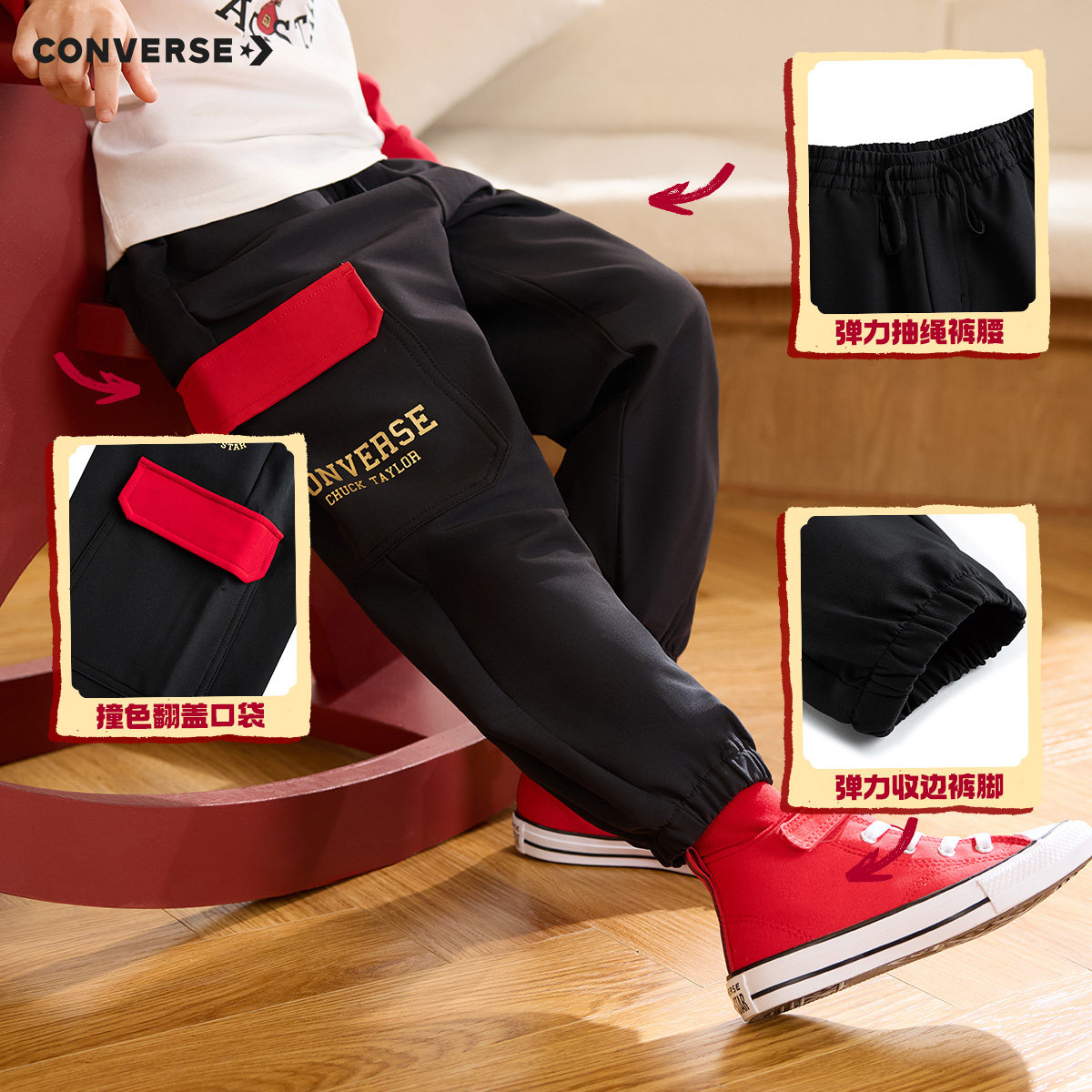 男童长裤 匡威童装 春季 新款 运动卫裤 百搭束脚工装 CNY新年系列