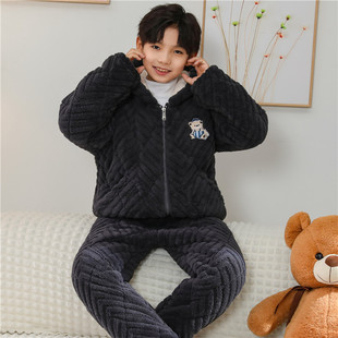 珊瑚绒保暖秋冬款 加绒加厚三层夹棉法兰绒家居服套装 冬季 睡衣男士