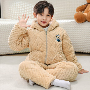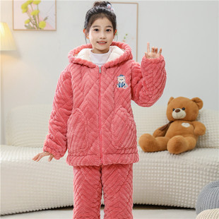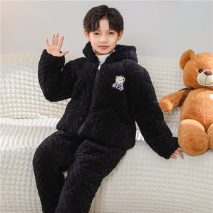 三层夹棉睡衣珊瑚绒加绒加厚法兰绒家居服冬天套装 秋冬季 男士 新款