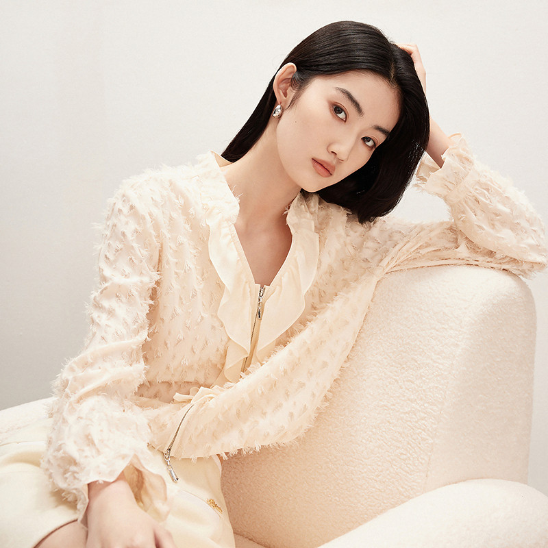 新款 HPLY荷比俪冬季 花型荷叶边衬衫 商场同款