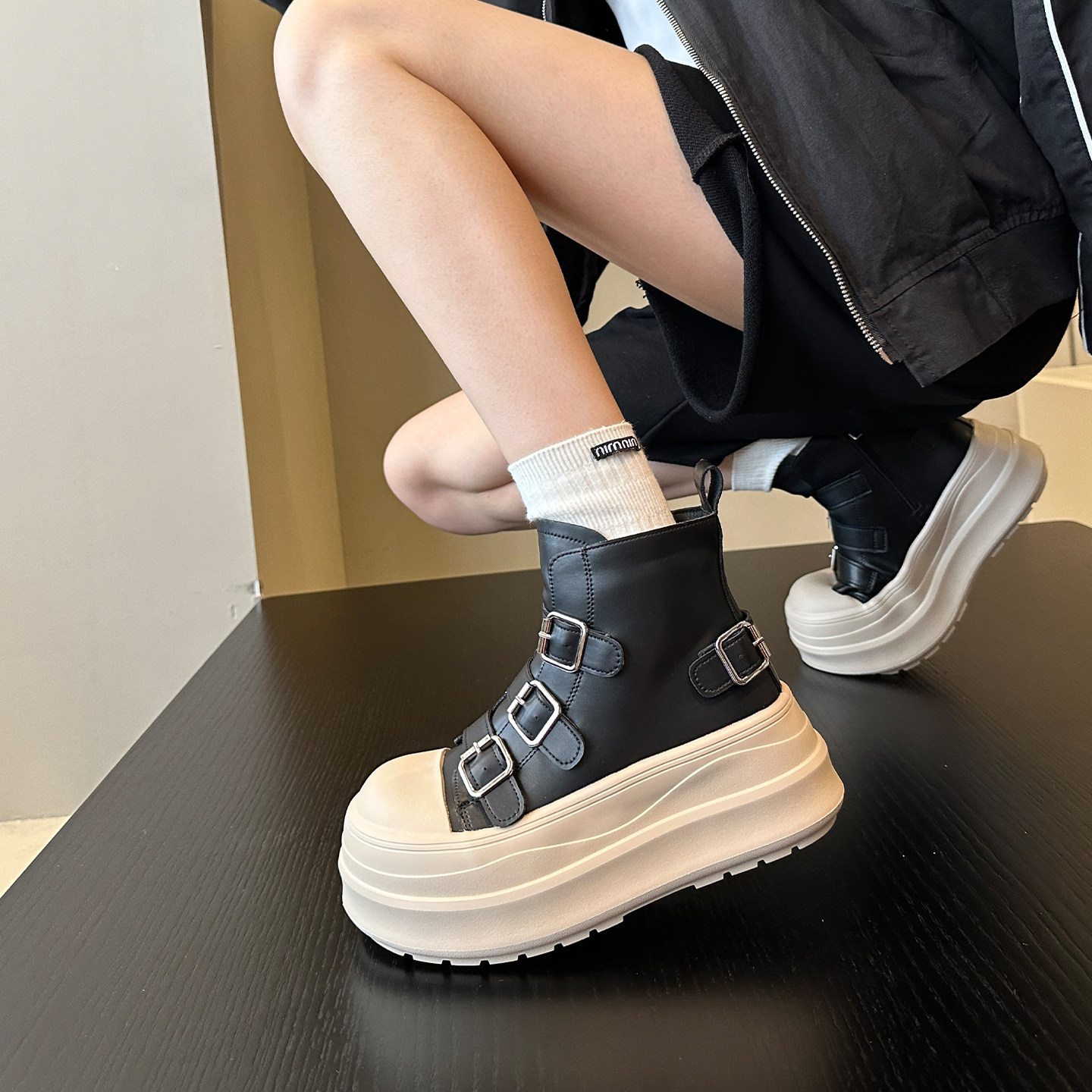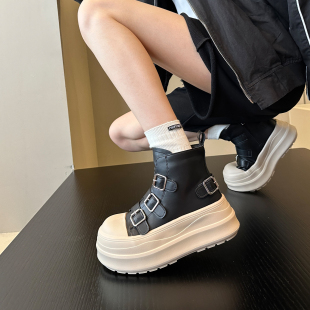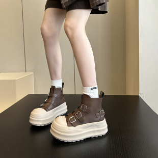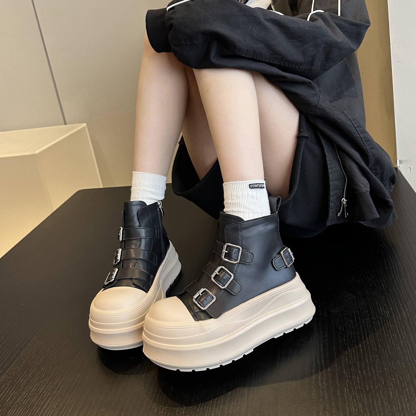 秋季 板鞋 炸街牛货真皮增高ins松糕厚底鞋 女鞋 大头高帮鞋 日系甜酷