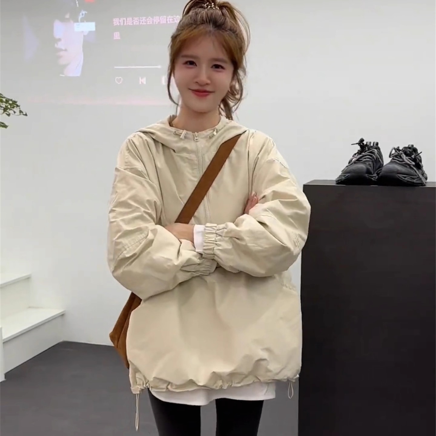 韩系宽松高级感小个子上衣 2025新款 连帽冲锋衣外套女中长款 秋季