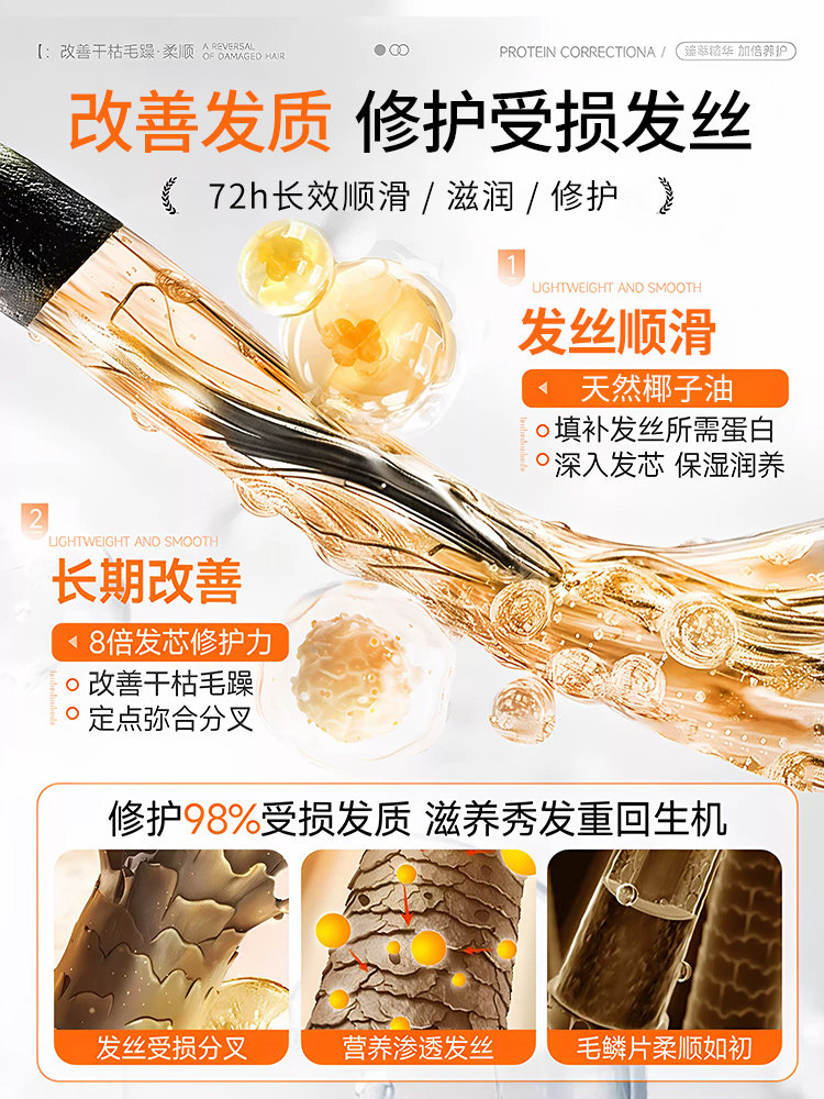 天然椰子油护发蛋白营养液头发膜修复干枯补水顺滑蛋白矫正防毛躁