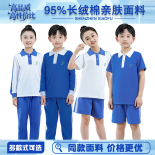 高级 中蓝白色套装 深圳校服小学生中学生凉感速干夏运短袖 T恤短裤