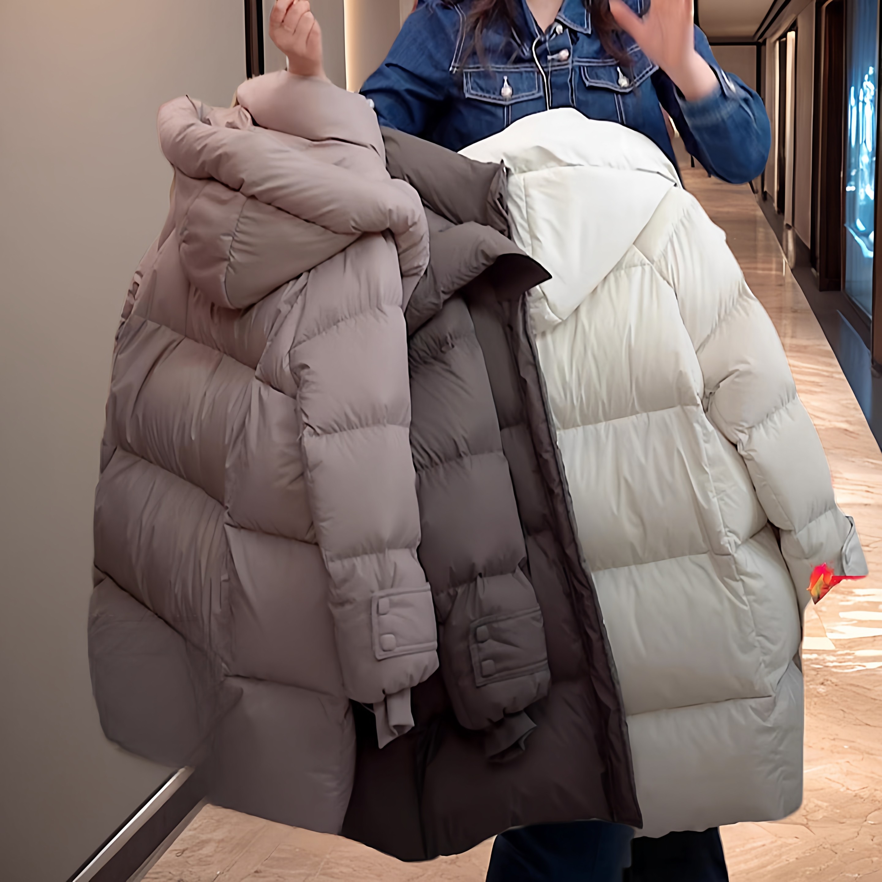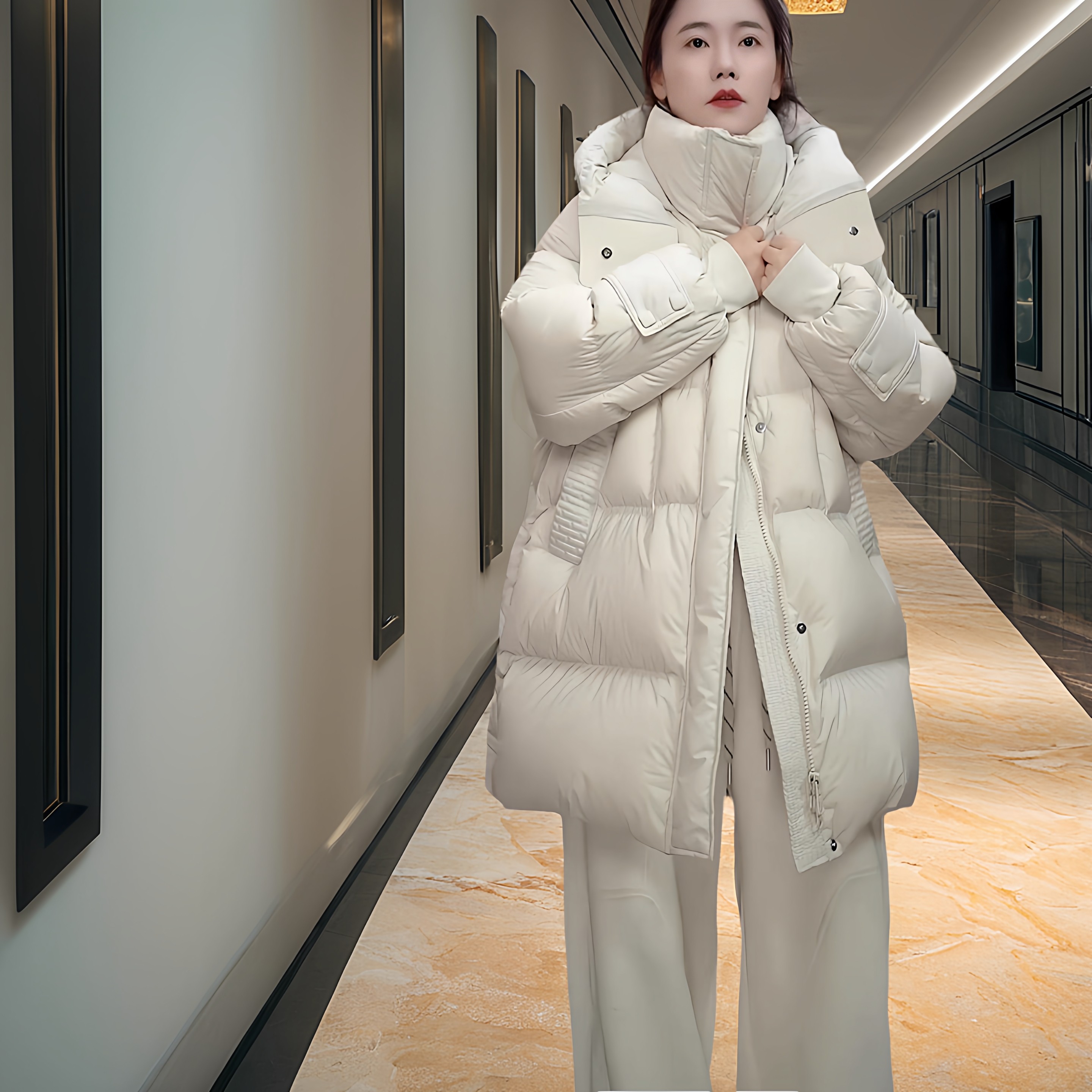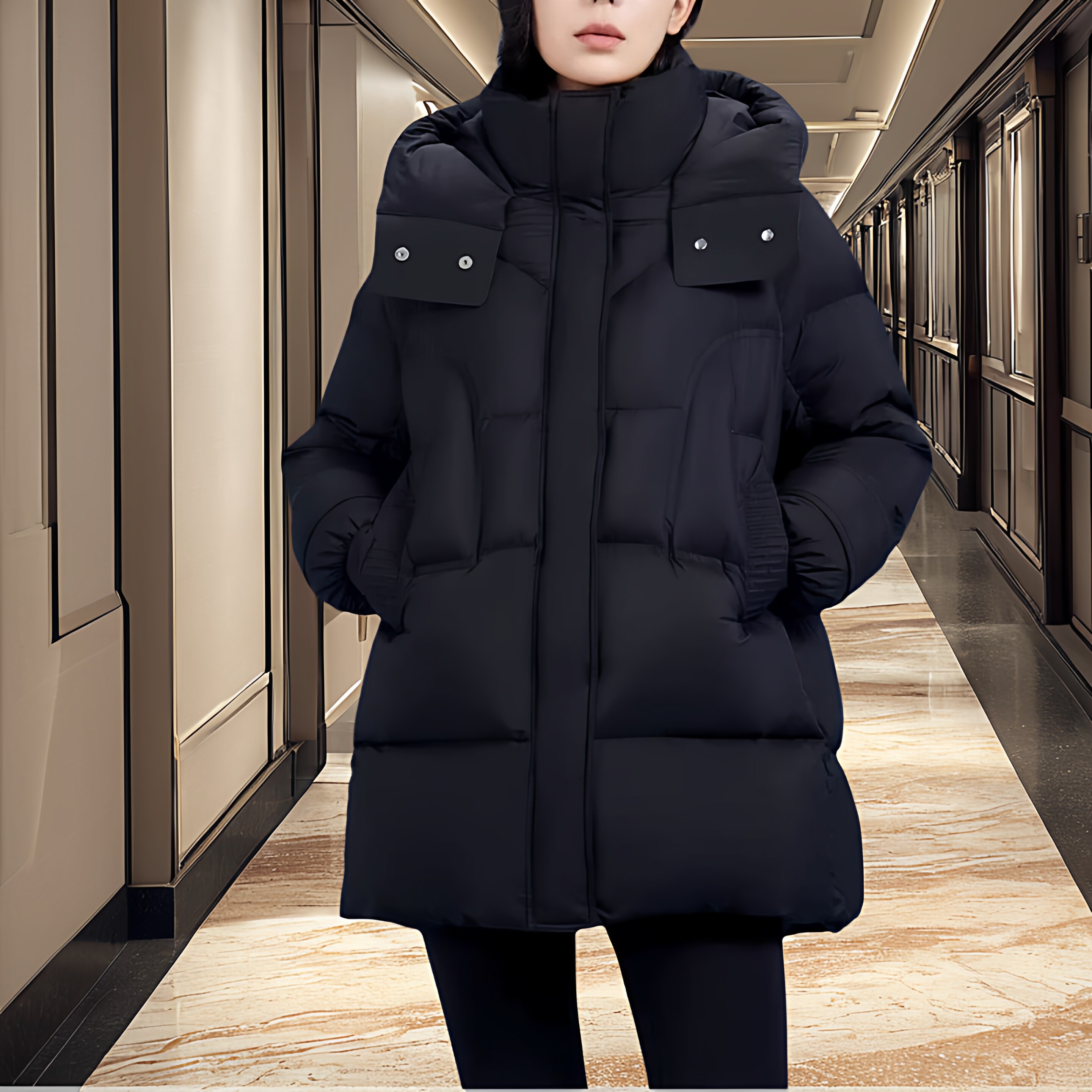 黑色鹅绒服女2026新款 泡芙羽绒服防寒防风连帽加厚保暖外套 中长款