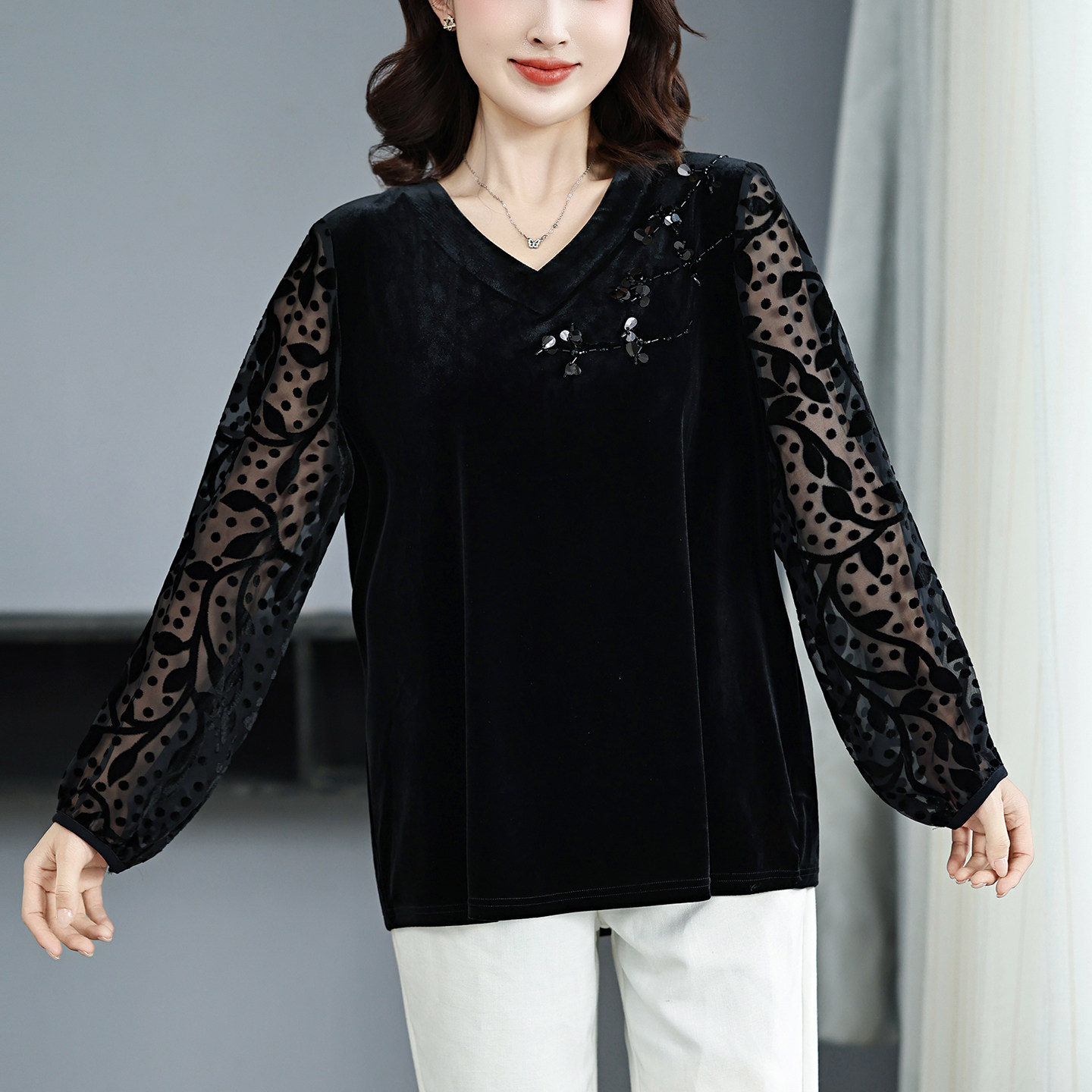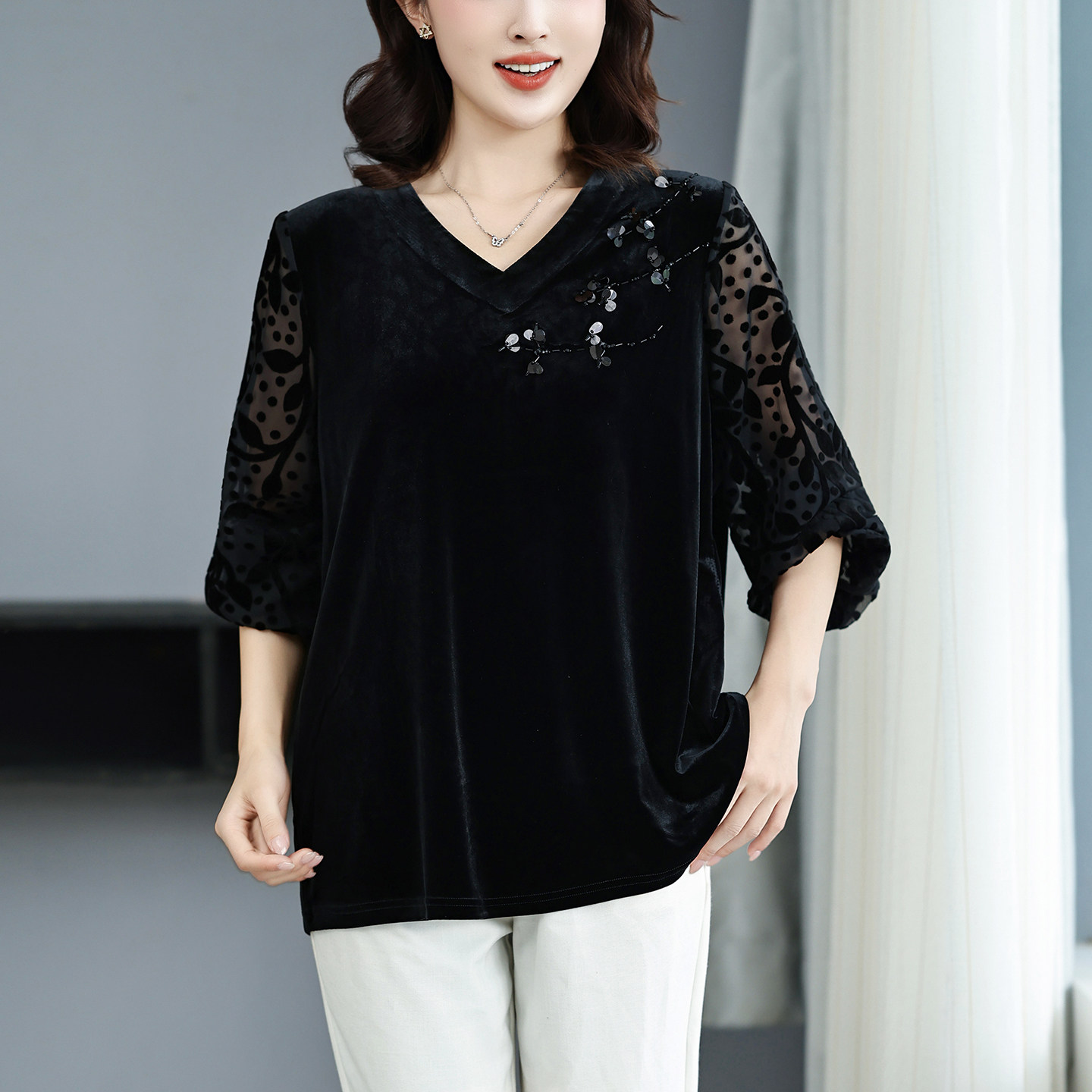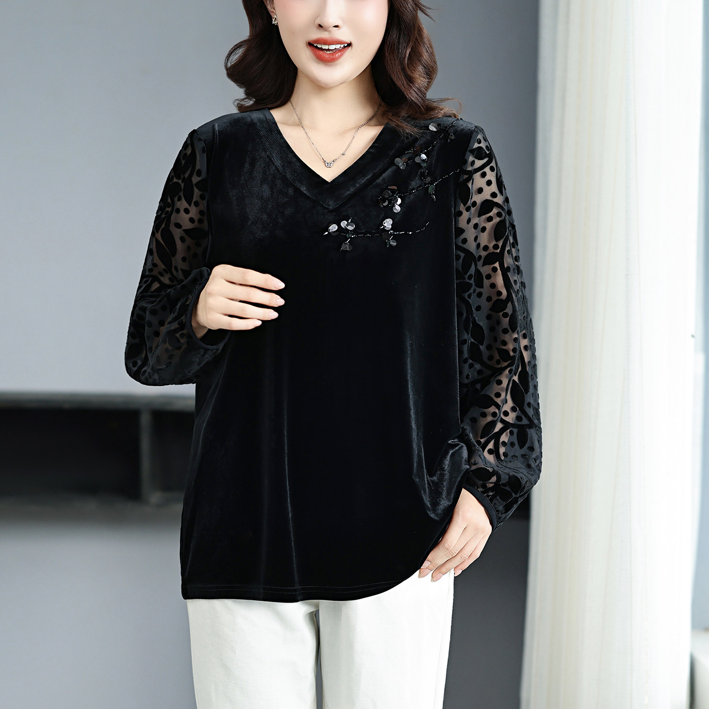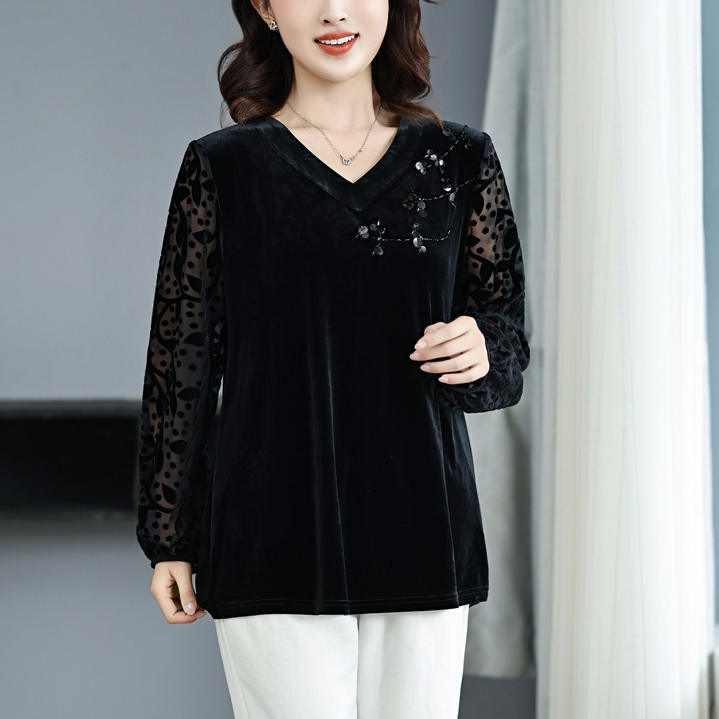 外穿打底 丝绒上衣200斤加肥加大洋气高贵小衫 上档次胖妈妈装 大码