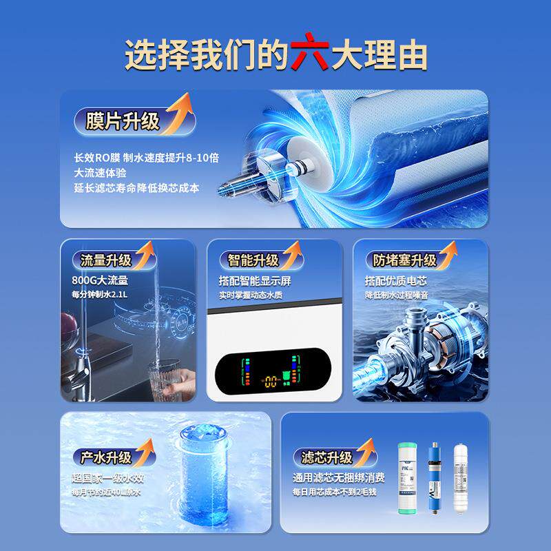 新款 净水器RO反渗透膜纯水机家用厨房800G大流量自来水过滤直饮机