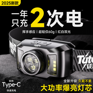 头灯2025新款 超长续航户外登山赶海钓鱼照明灯 强光超亮充电头戴式