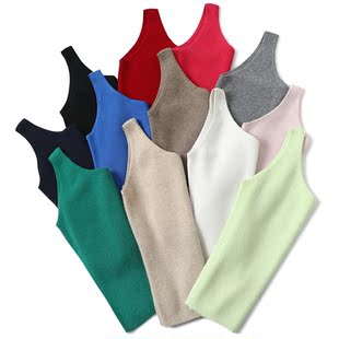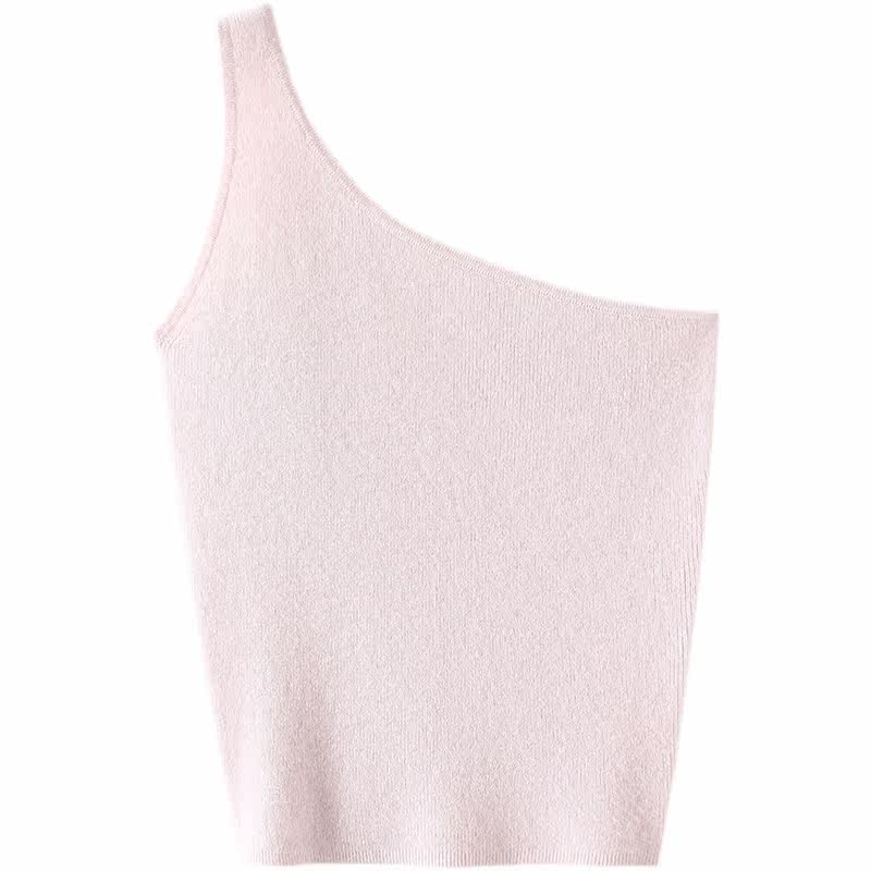 官方正品 纯羊绒毛衣内搭针织吊带 不规则斜肩羊绒吊带背心女修身