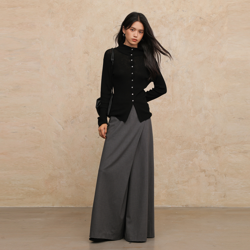 AZ53CK159 斜拼错位设计感宽松休闲裤 黑标BAIZHUO商场同款 25秋新款