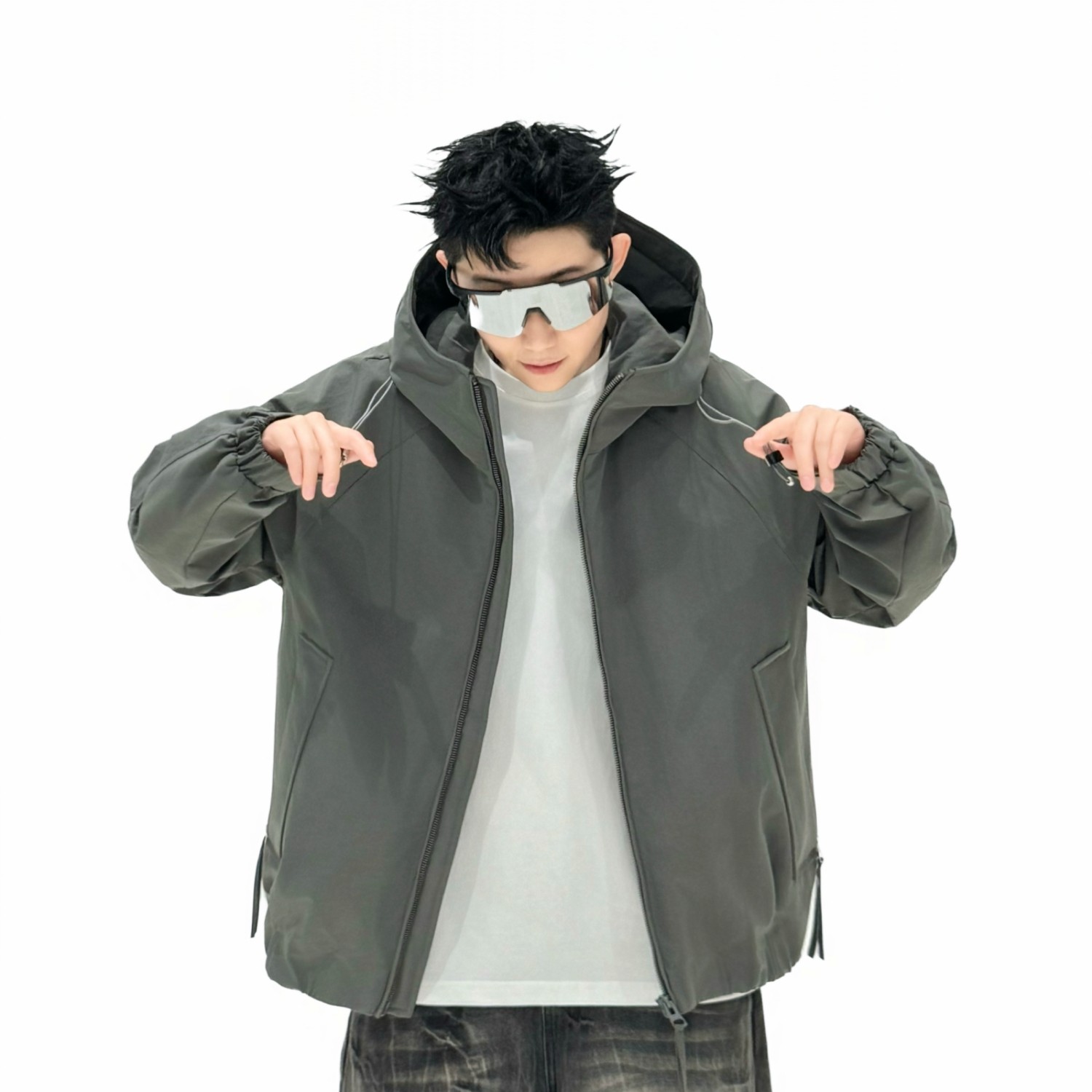 2025秋冬加厚宽松连帽夹克男潮流夹棉外套闲工装 运动户外保暖棉服