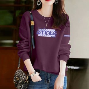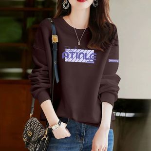 上衣服 洋气减龄百搭宽松显瘦印花爆款 春秋纯棉长袖 套头卫衣女韩版