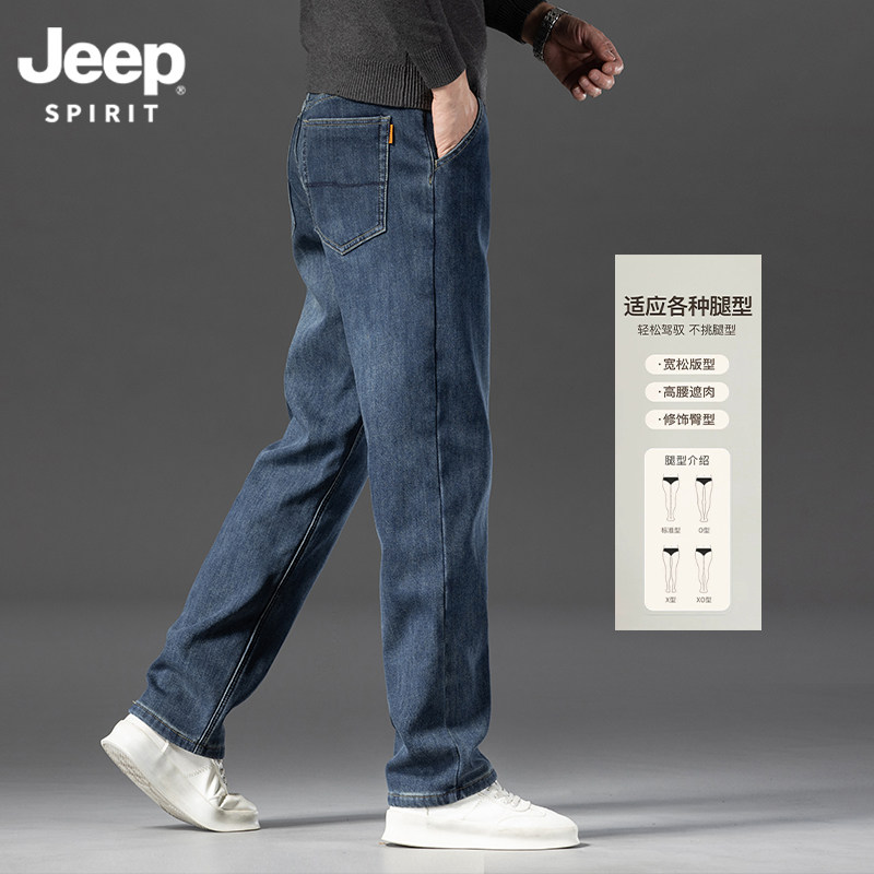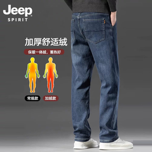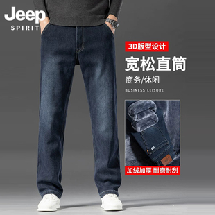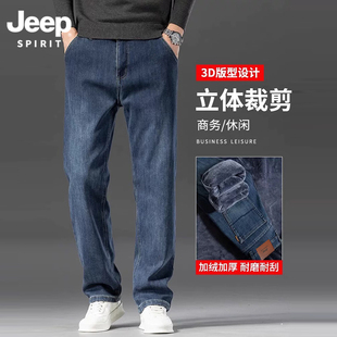 吉普加绒加厚裤 男宽松直筒弹力商务中年 JeepSPIRIT高腰深档牛仔裤