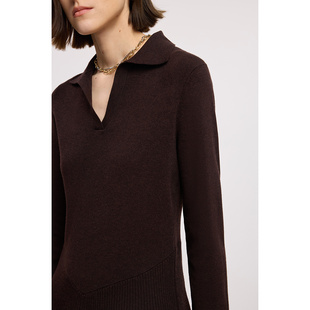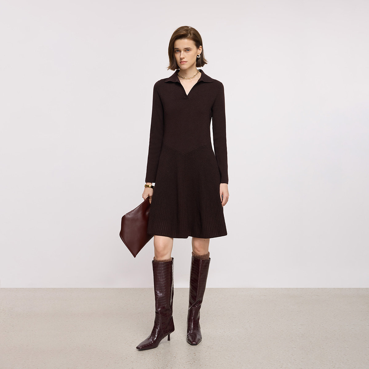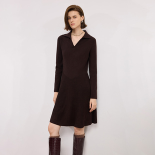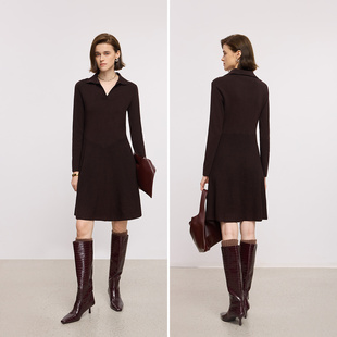 连衣裙女 收腰气质通勤深色长袖 LILY2025冬新款 含羊毛复古翻领修身
