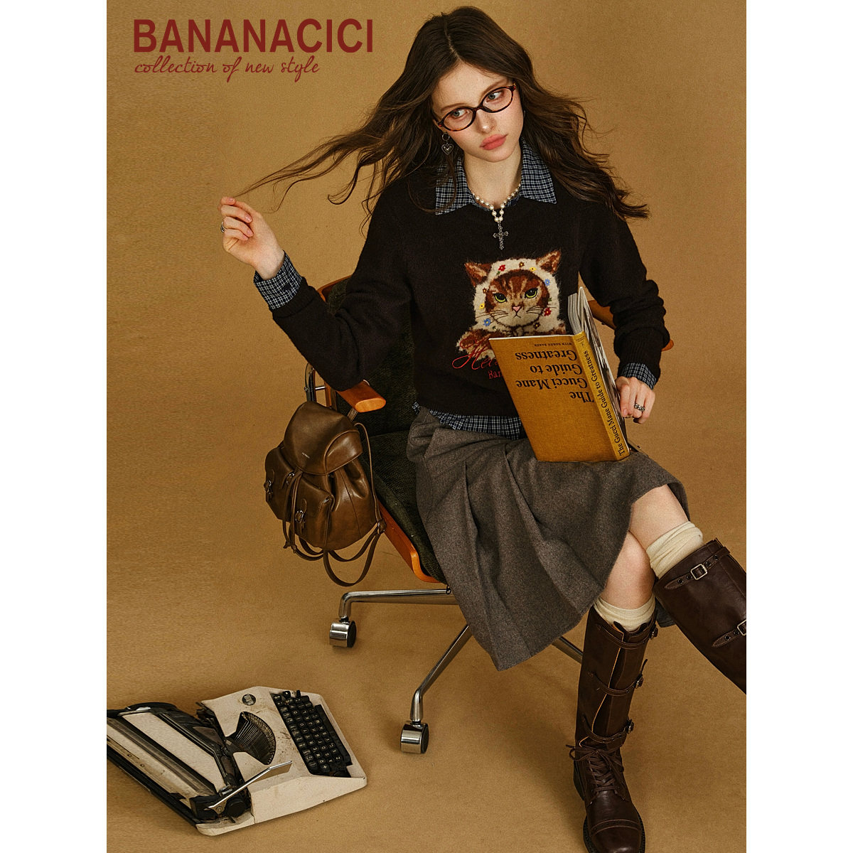 针织打底衫 品牌高级感羊毛衫 女半高领宽松毛衣秋冬加厚羊绒长袖