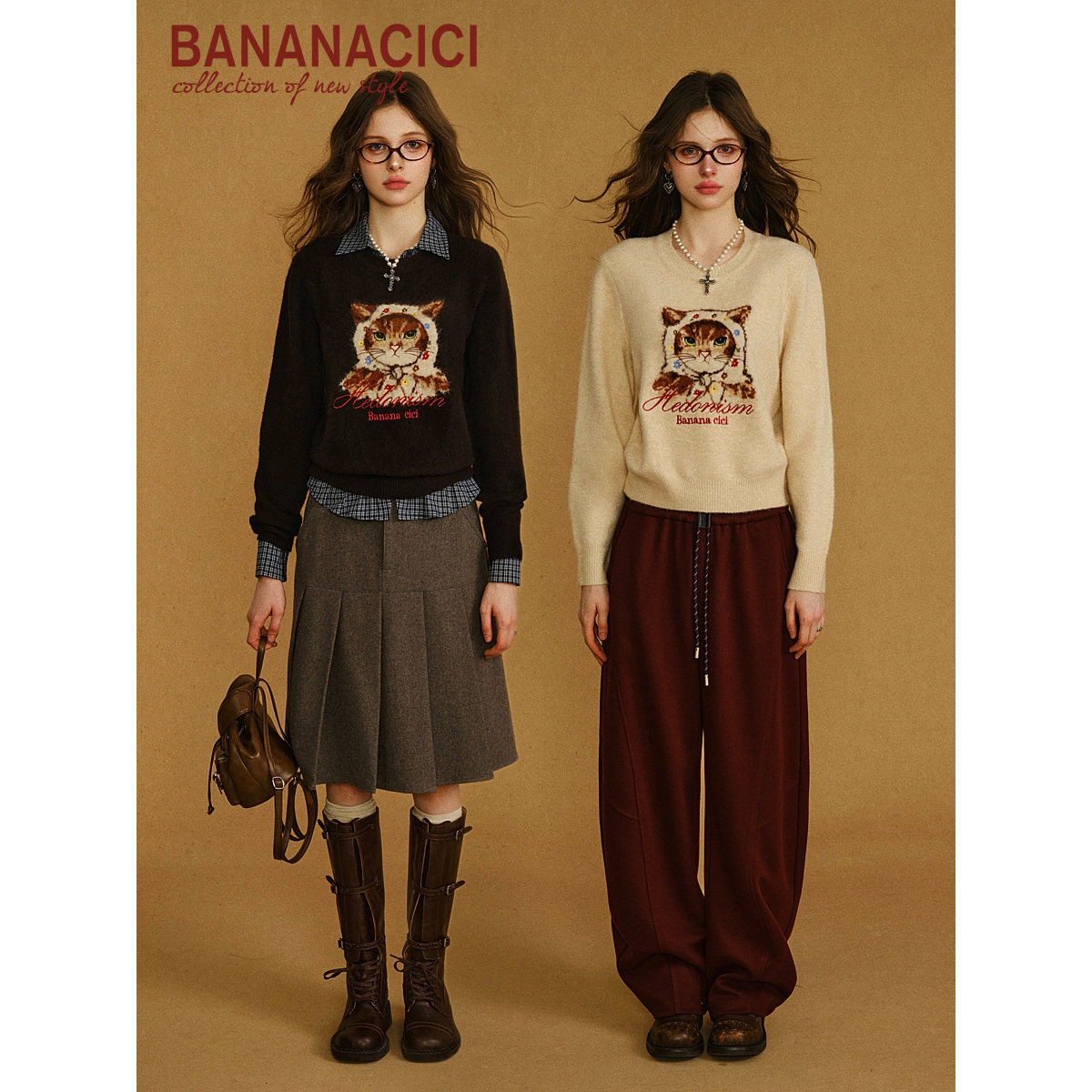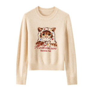 高级感上衣宽松打底针织衫 圆领100%纯山羊绒衫 女高端毛衣秋冬新款