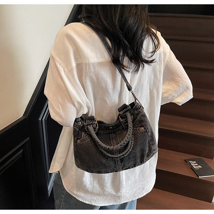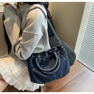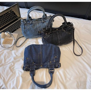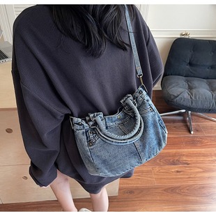新款 百搭大容量单肩包 斜挎包女水洗牛仔布包包小众设计牛仔包时尚