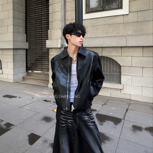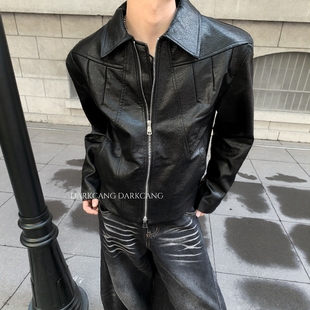 韩系黑色pu皮衣宽松休闲百搭外套复古上衣 nana SPEAR YOUTH
