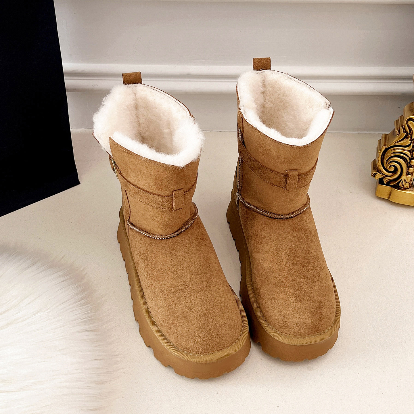 2025冬季 勃肯鞋 新款 厚底加绒加厚保暖毛毛鞋 女雪地靴 棉鞋 骆驼女鞋