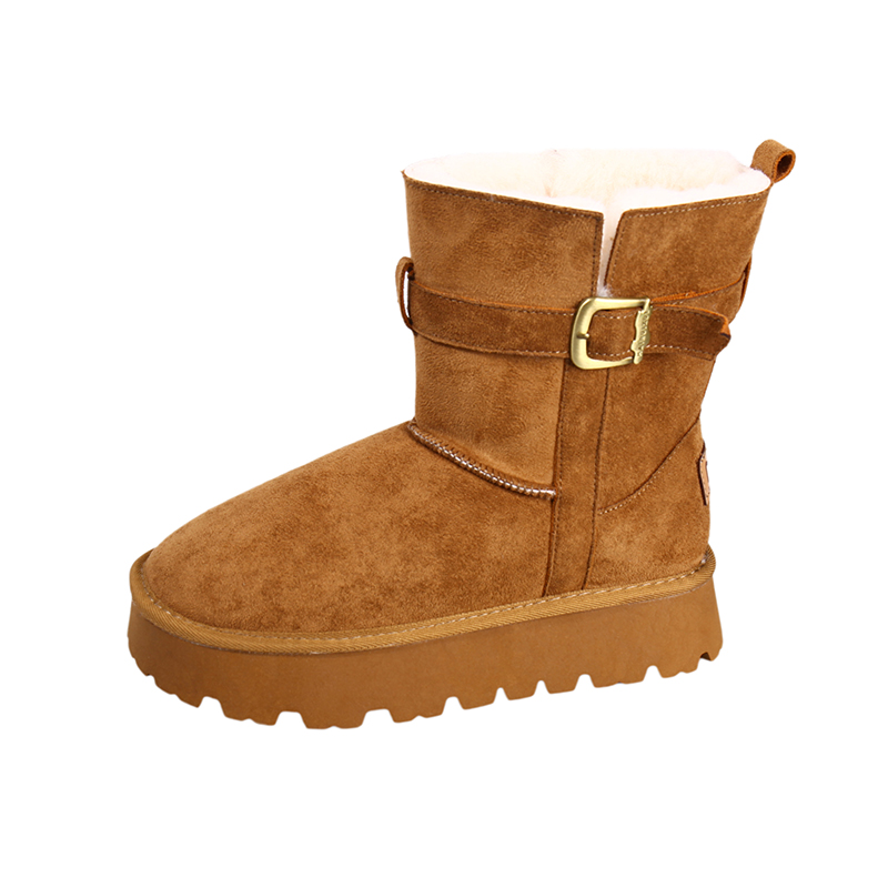 香菇来了 雪地靴厚底棉鞋 骆驼女鞋 保暖时尚 百搭加绒加厚女 新款