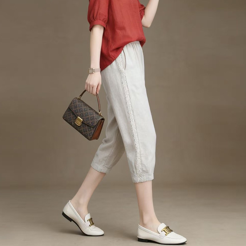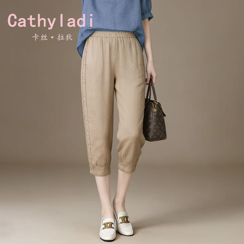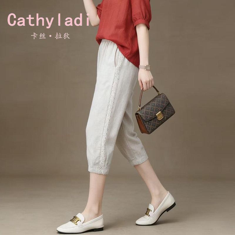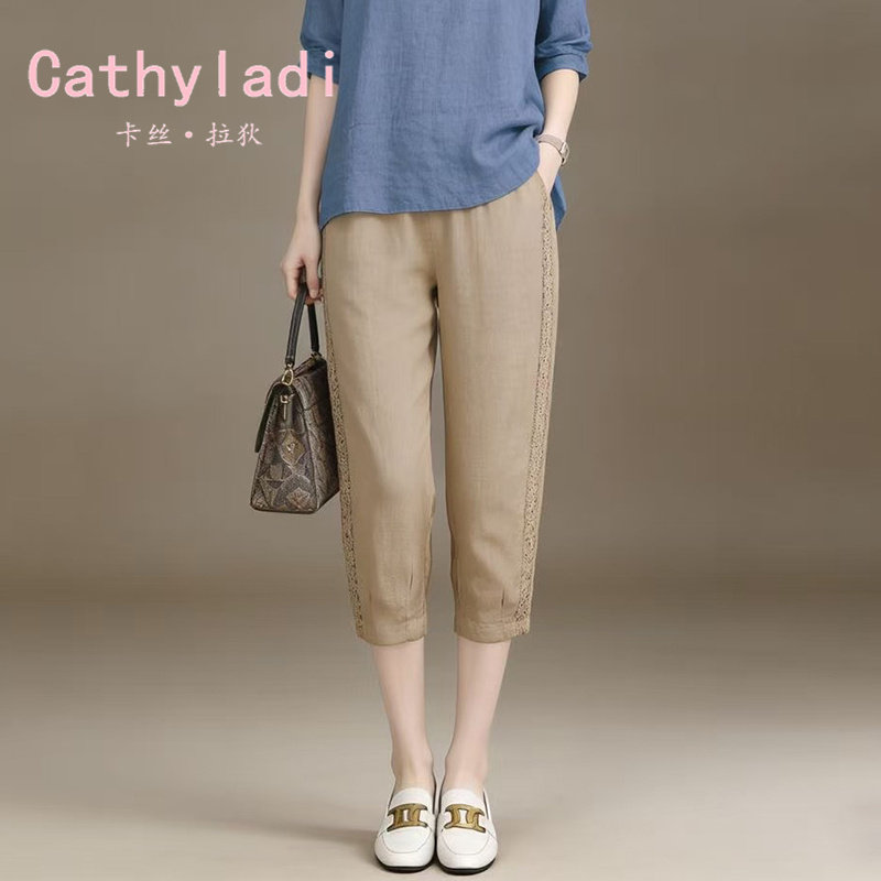 透气显瘦百搭七分裤 2026年春夏时尚 休闲裤 CATHYLADI蕾丝拼接薄款