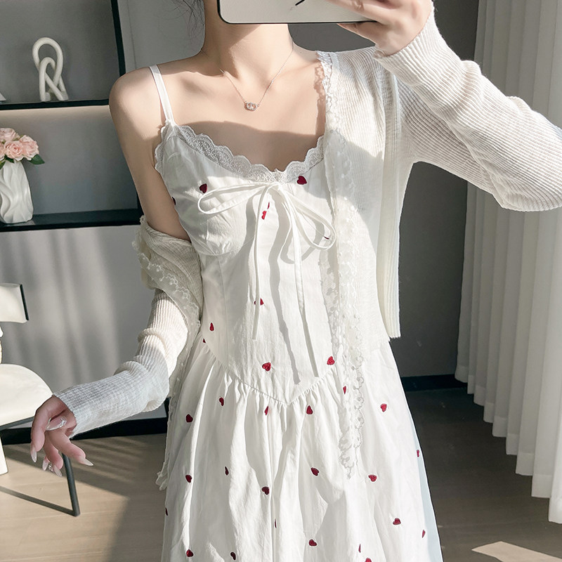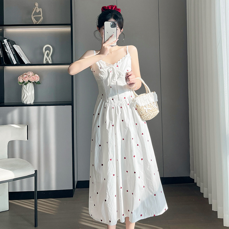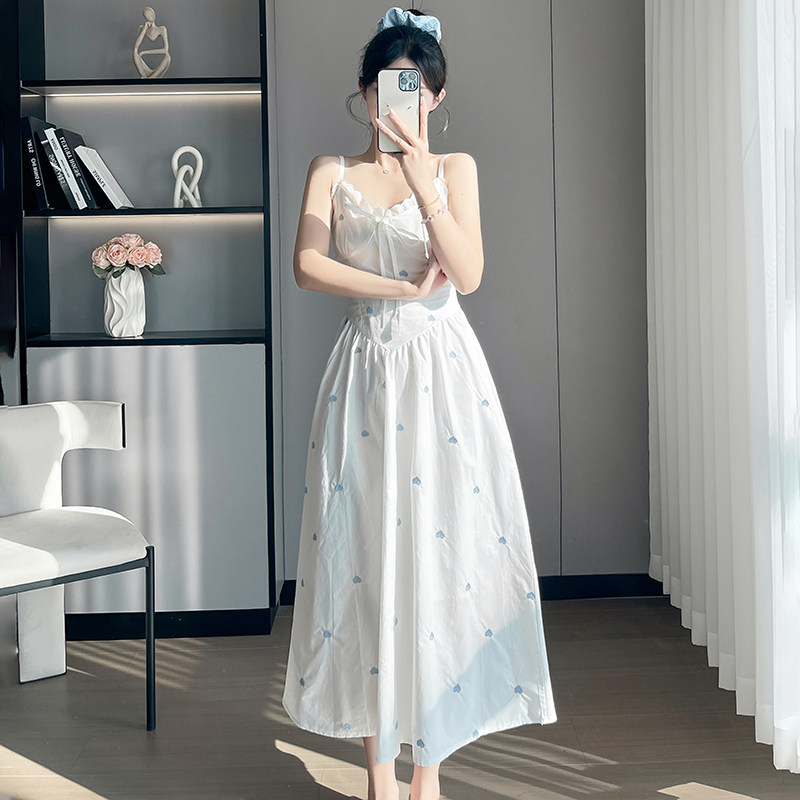 爱心刺绣吊带连衣裙2026夏季 收腰显瘦温柔风中长裙 新款
