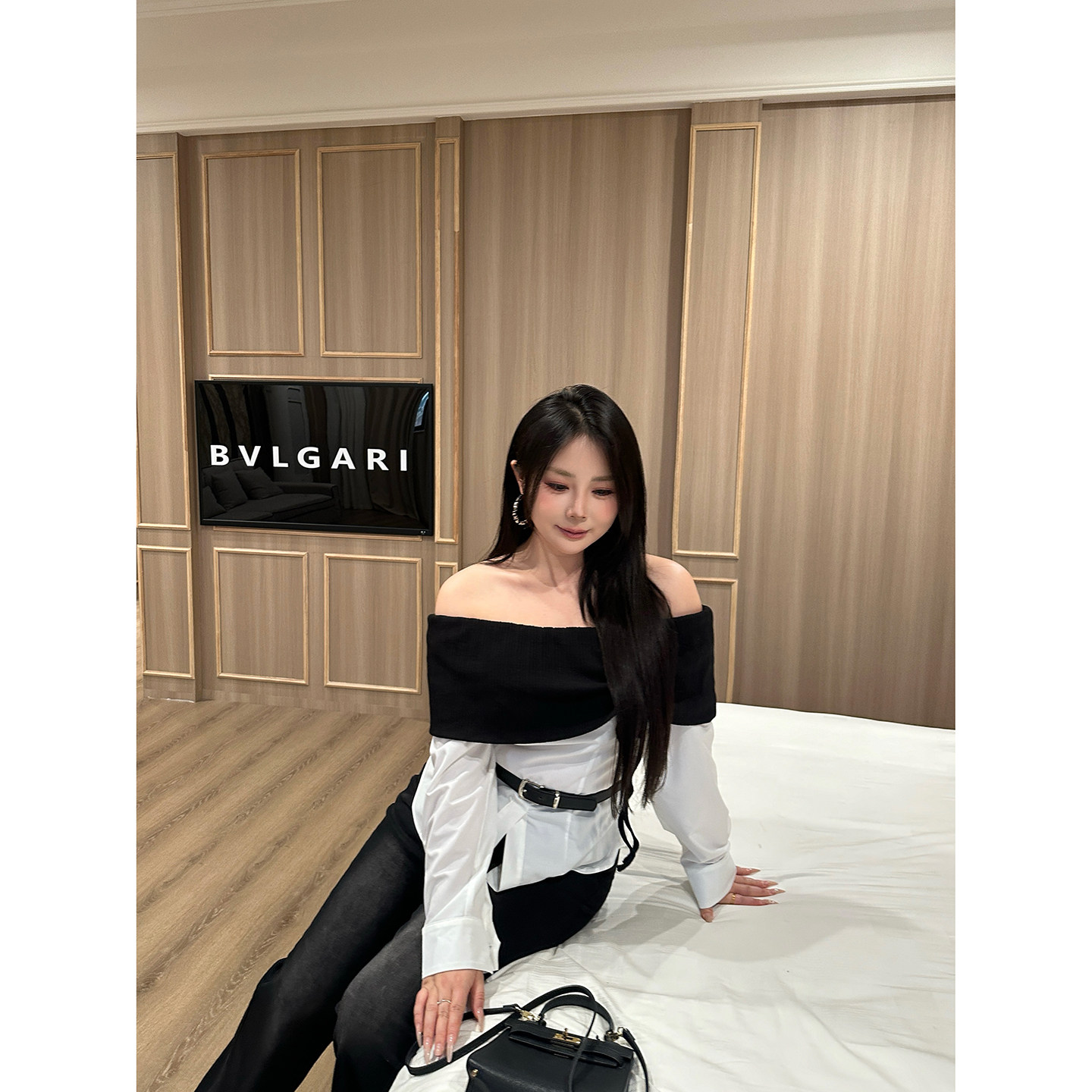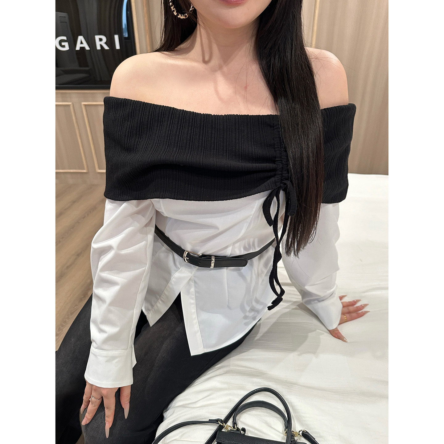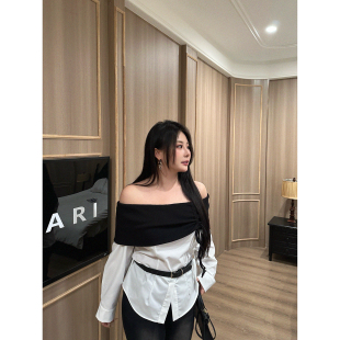 衬衫 气质显瘦拼接撞色长袖 设计感上衣 赫系女神 大小姐微胖大码