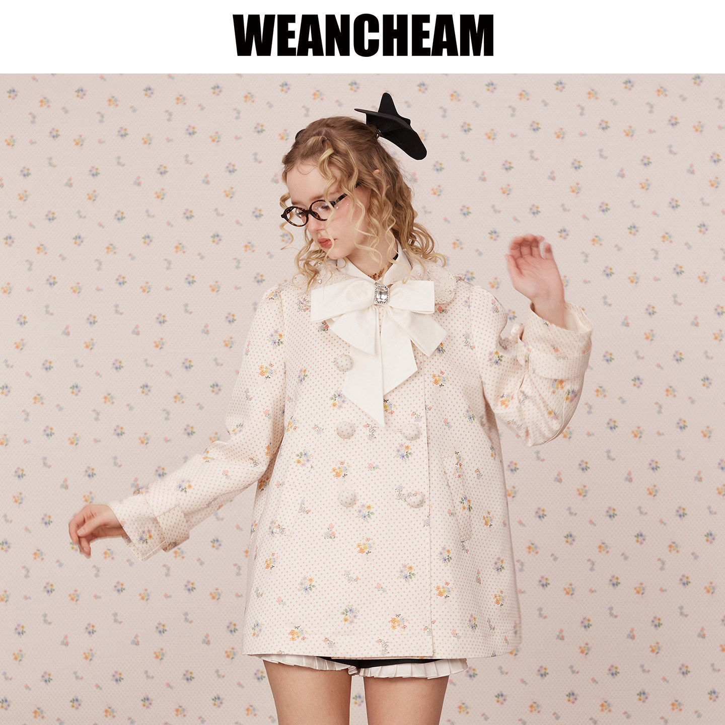 定制印花醋酸娃娃领碎花风衣外套女 新款 WEancheAM 未未姆2026春季