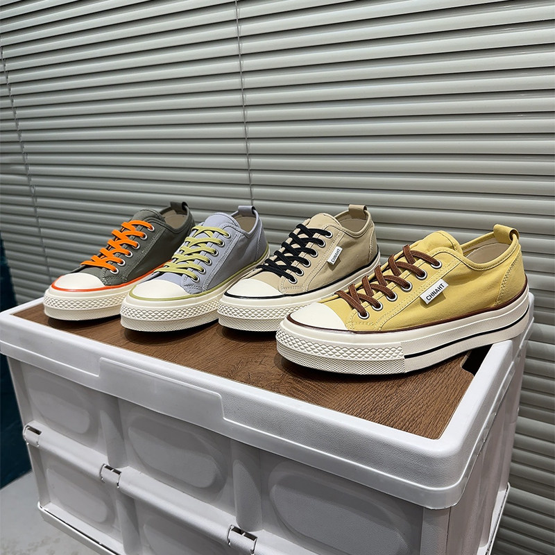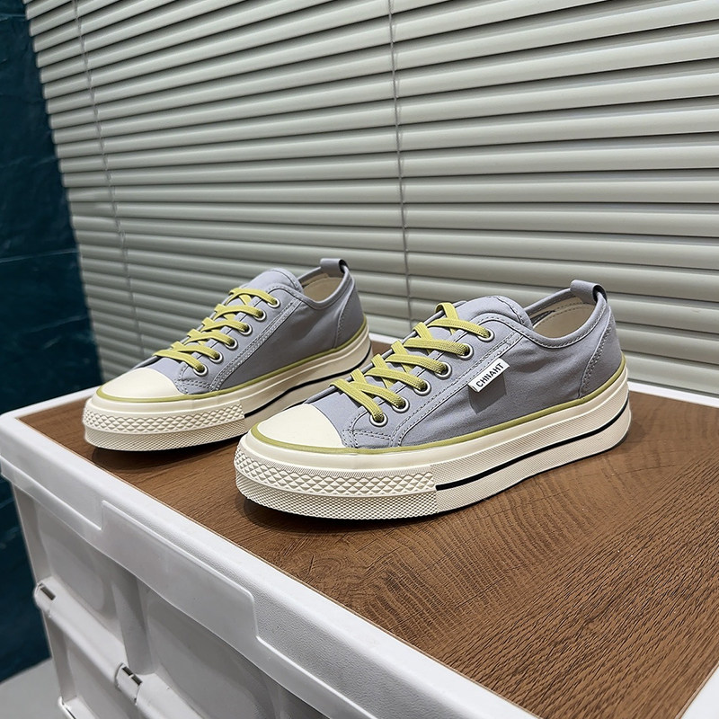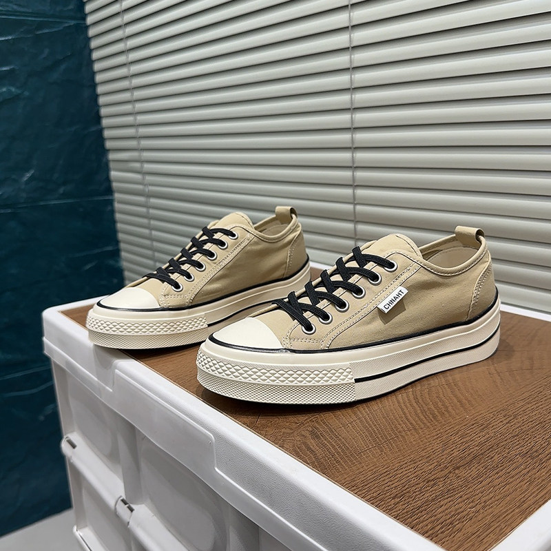 黄色低帮帆布鞋 百搭单鞋 女2026春季 厚底系带学生休闲板鞋 新款 韩版