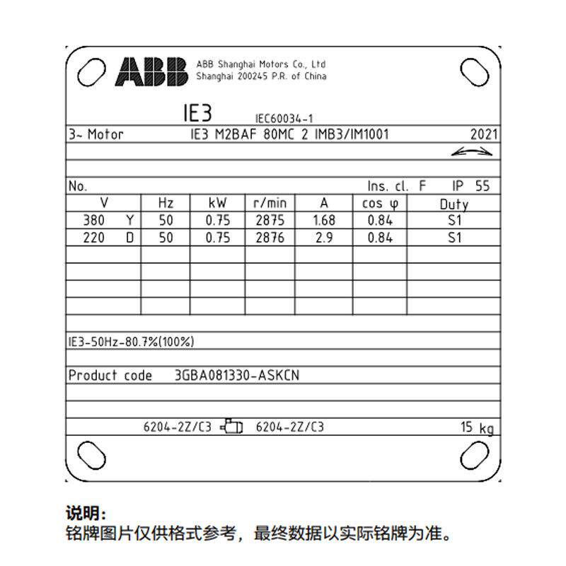 原V装 355KWP220V3ACA80I55F级绝缘 ABB电机M2BAF全系列0.12KW