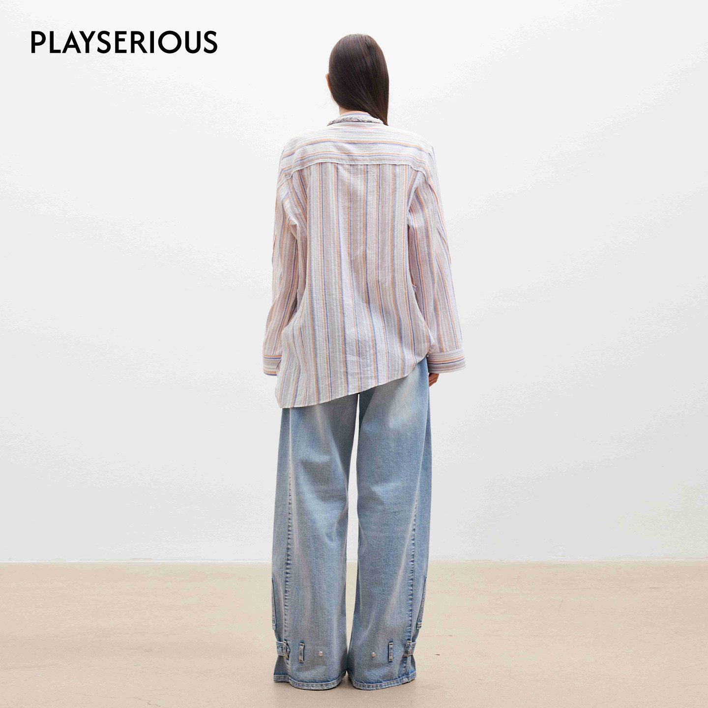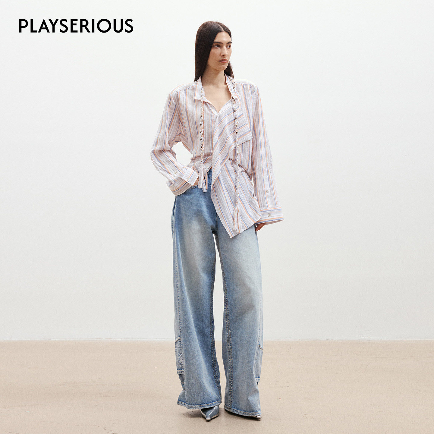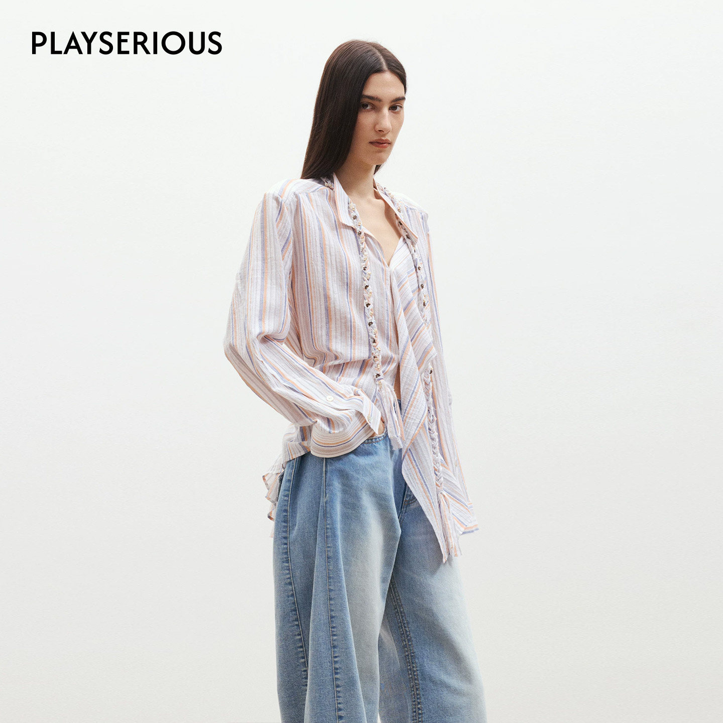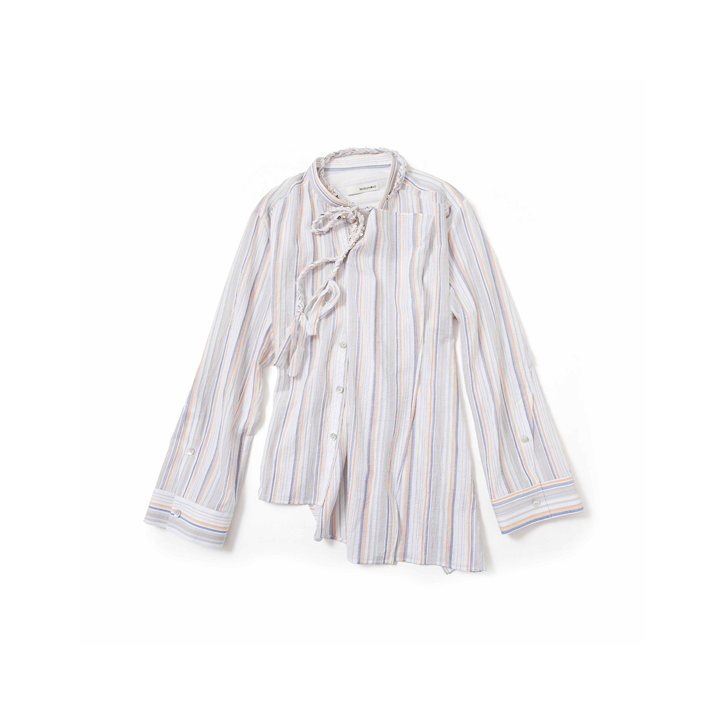 女休闲风条纹衬衫 Medium 麻花飘带两穿衬衫 2026春夏新款 Well