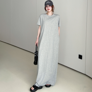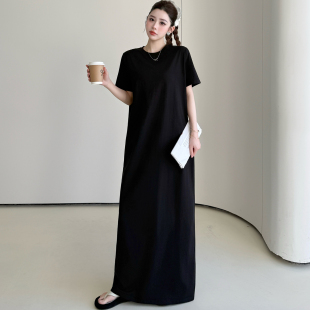 简约慵懒连衣裙宽松长款 夏季 胖mm显瘦遮肚法式 女装 过膝T恤裙 大码