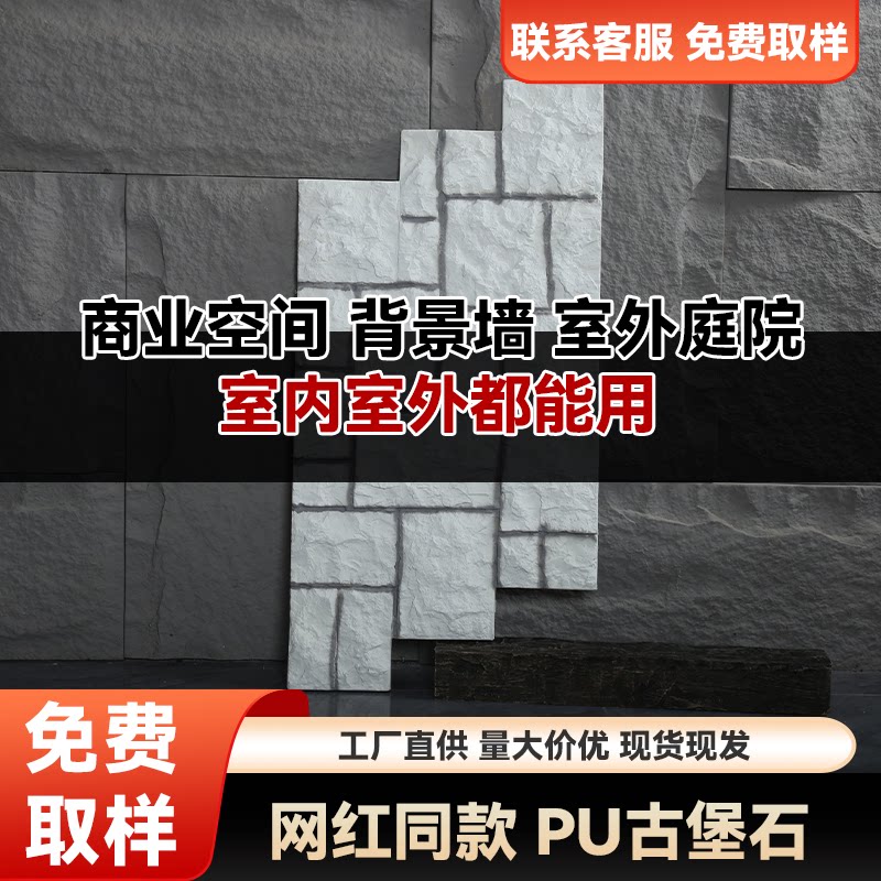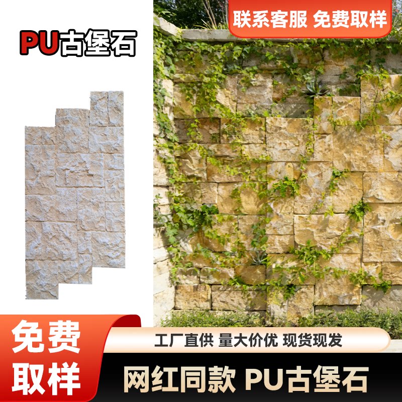 pu古堡洞石庭院石皮外墙砖背景墙砖碎拼石围墙堡垒石莱姆石蘑菇石