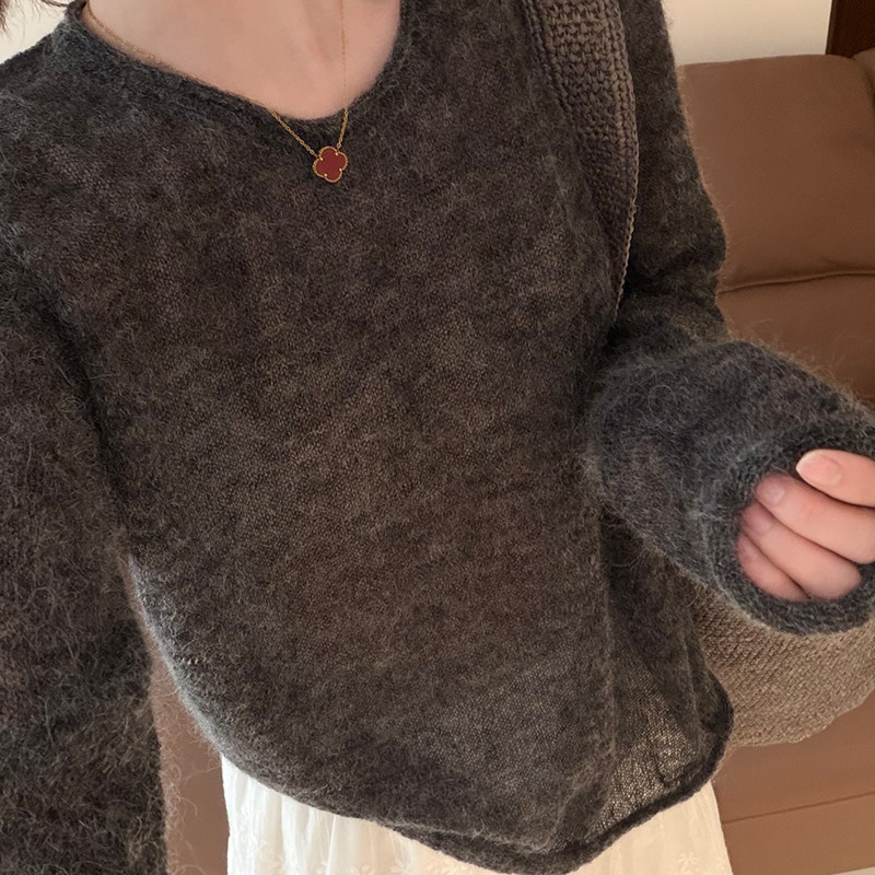 宽松显瘦气质百搭上衣长袖 韩版 女 2026新款 话里甜美早春马海毛罩衫