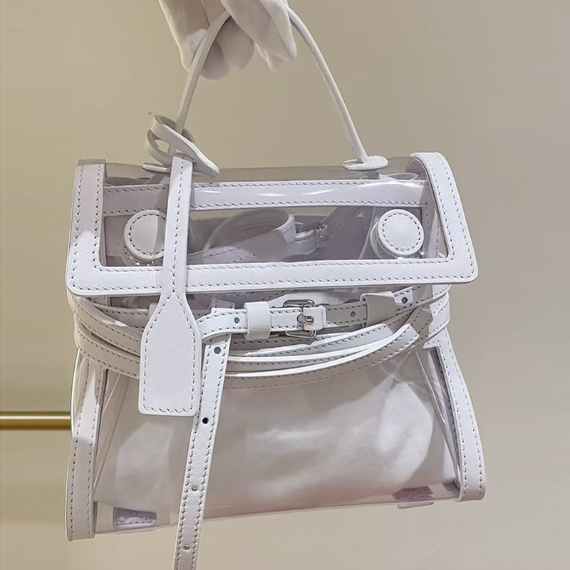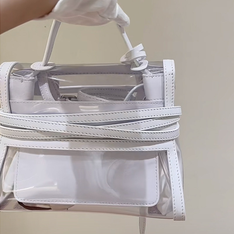 2026春夏新款 百搭清新手提斜挎包小包包 pvc透明女包皮带绷带时尚