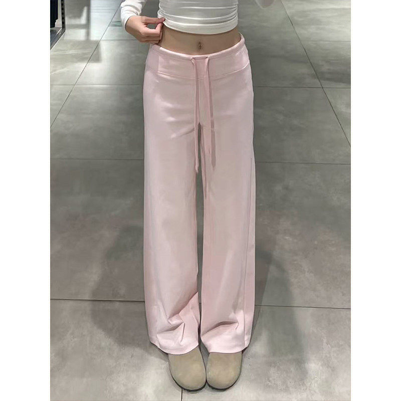 阔腿长裤 MosesQueen魔西女王粉色直筒休闲运动裤 女夏垂感显瘦薄款