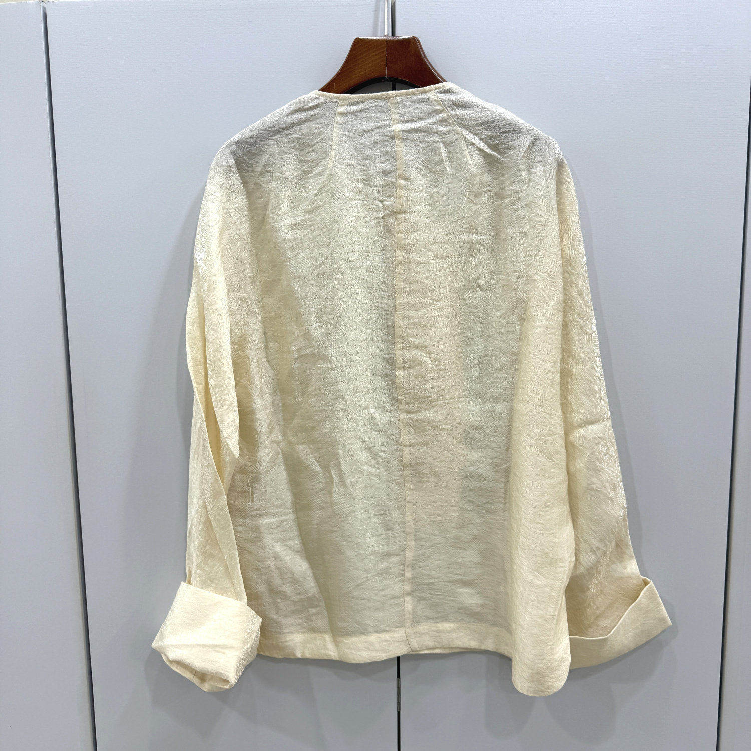 JD789欧货26春时尚 圆领盘扣斜门襟重工钉珠刺绣人丝提花国风衬衫