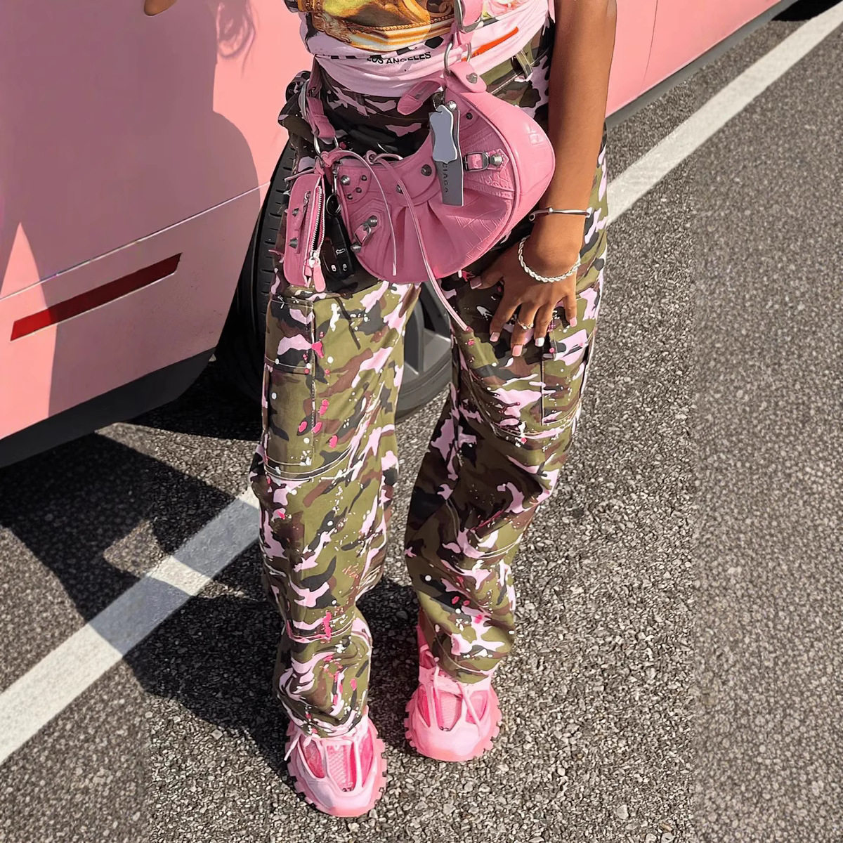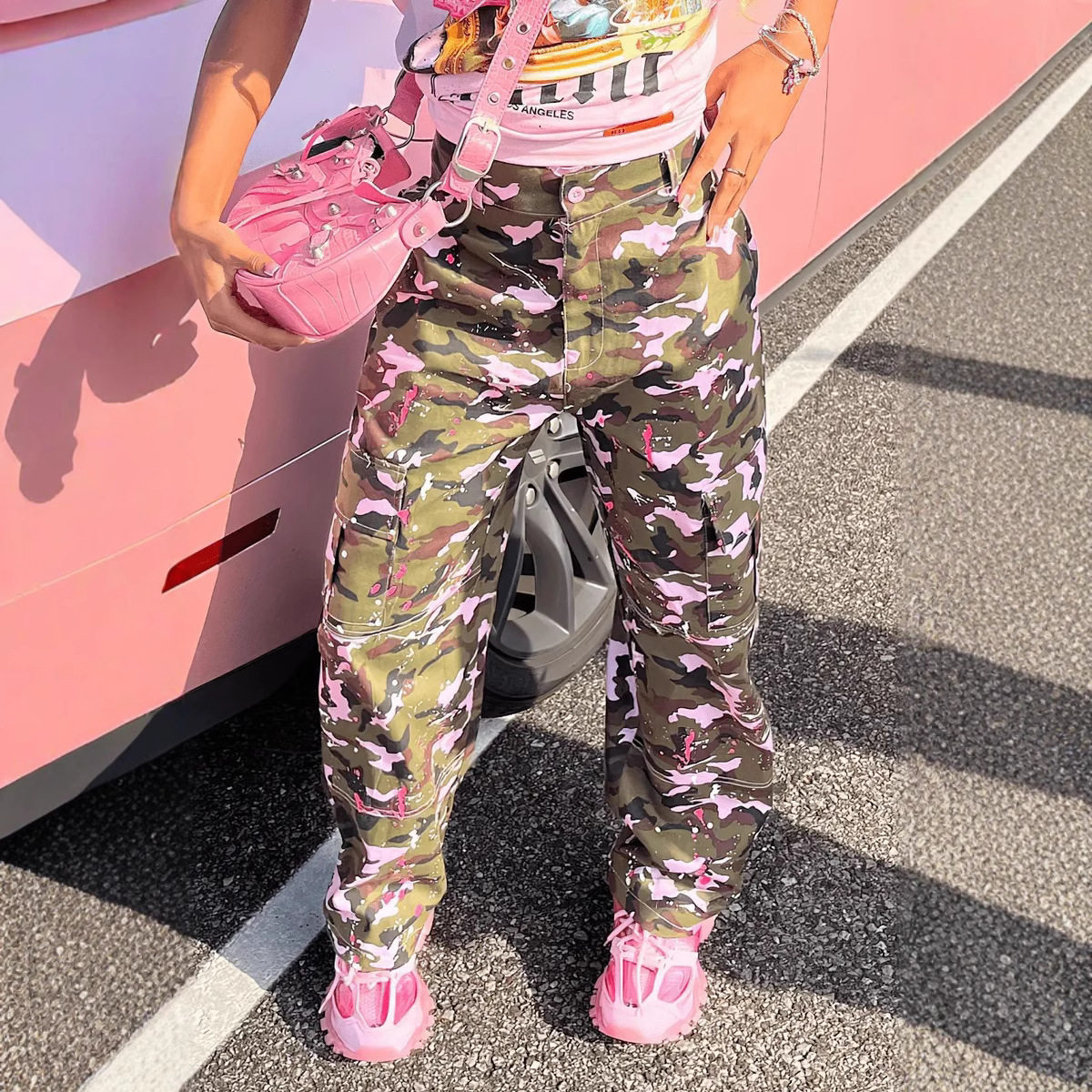 Y2K Streetwear Button Camouflage Hot Women Pocket girl Pants