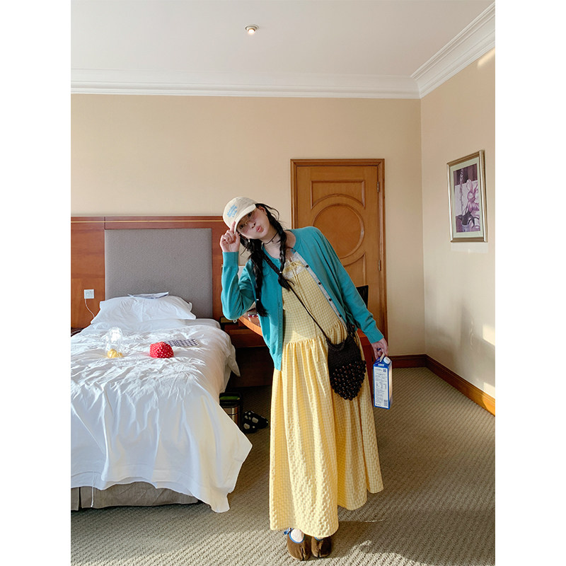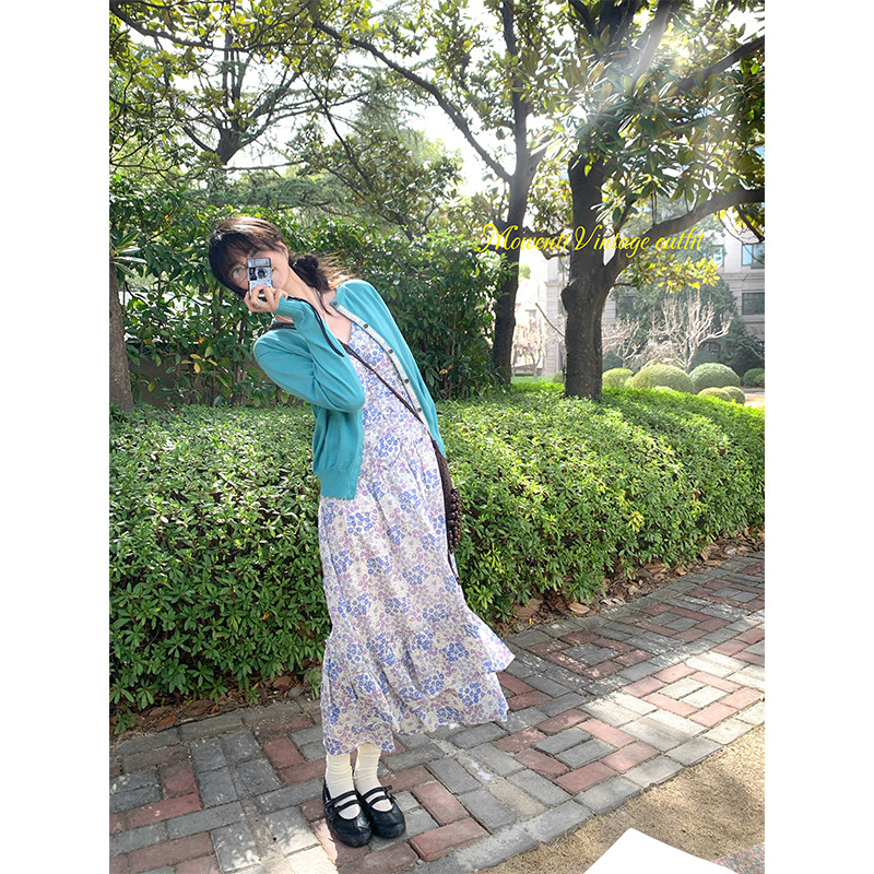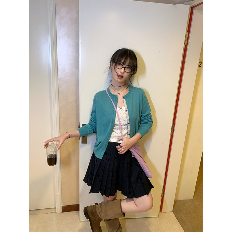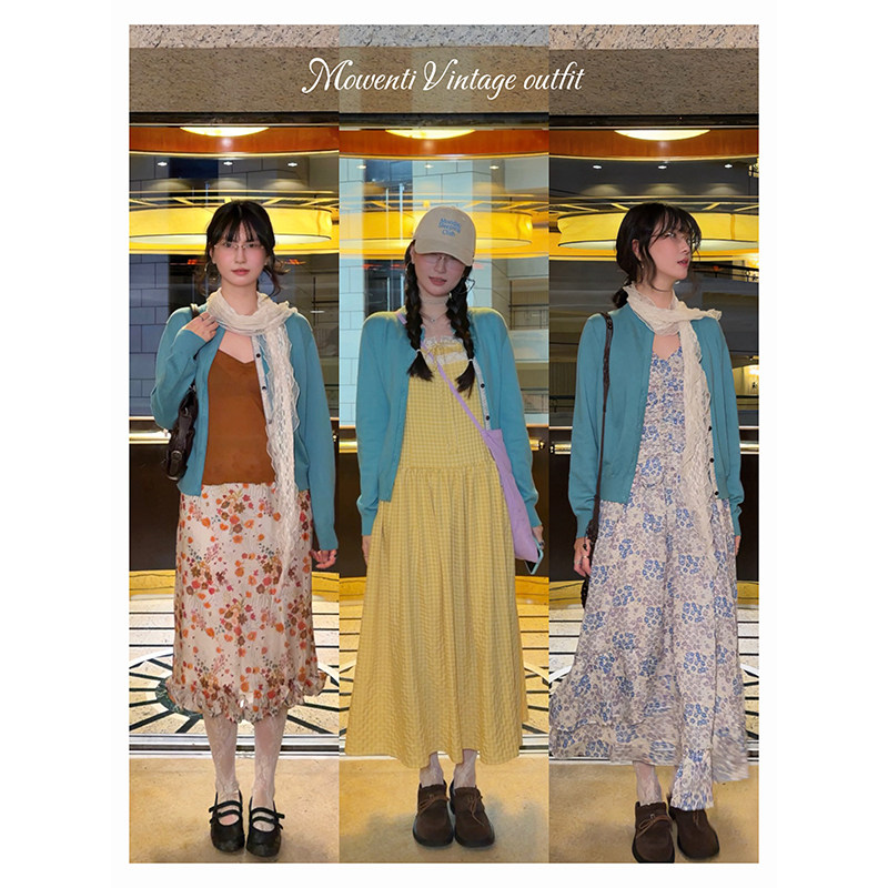 MOWENTI文文婷 2026春女碎花门襟小设计上衣 海盐薄荷圆领针织开衫
