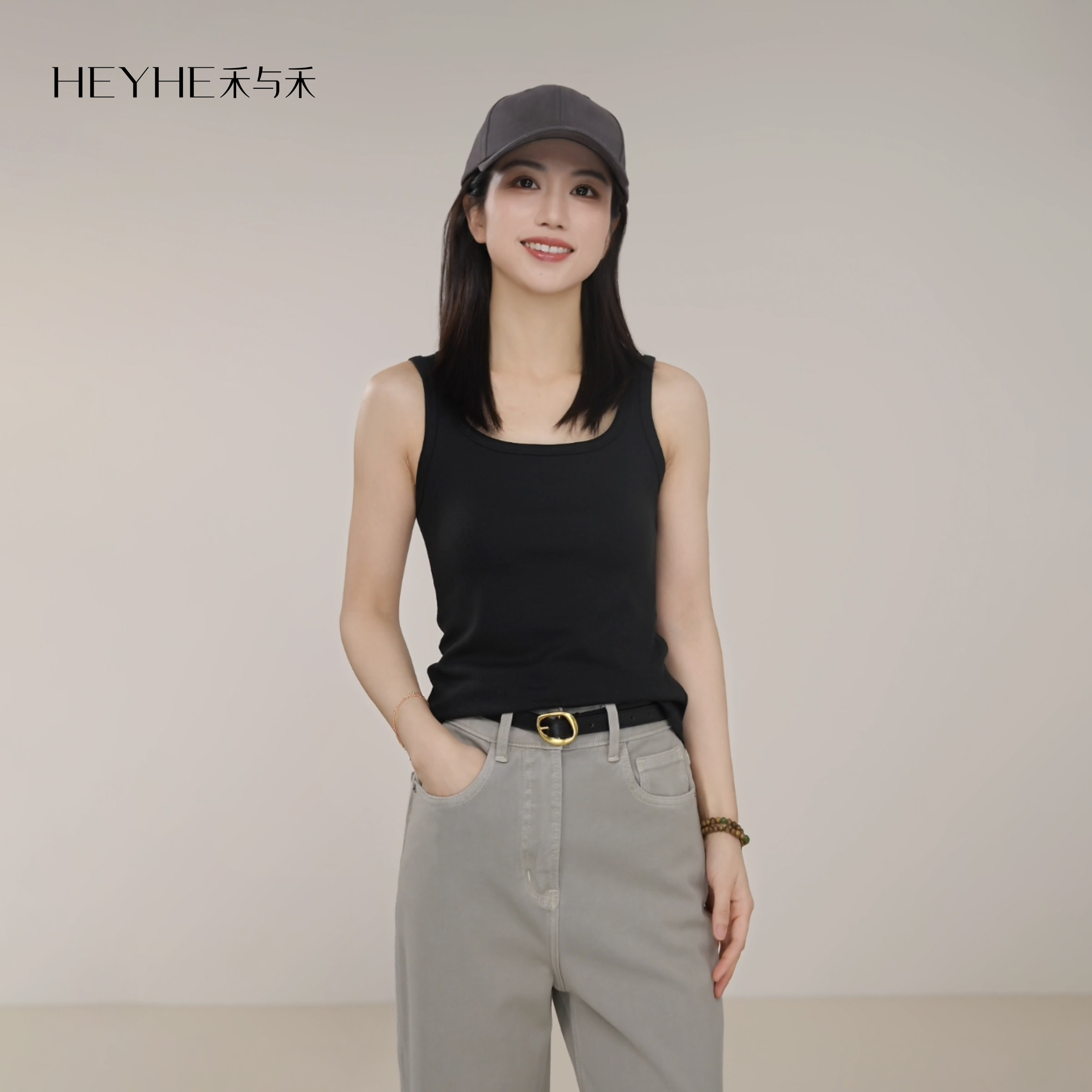 小禾 桑蚕丝棉亚麻螺纹清爽顺滑质感透气内搭打底背心 肯豆背心