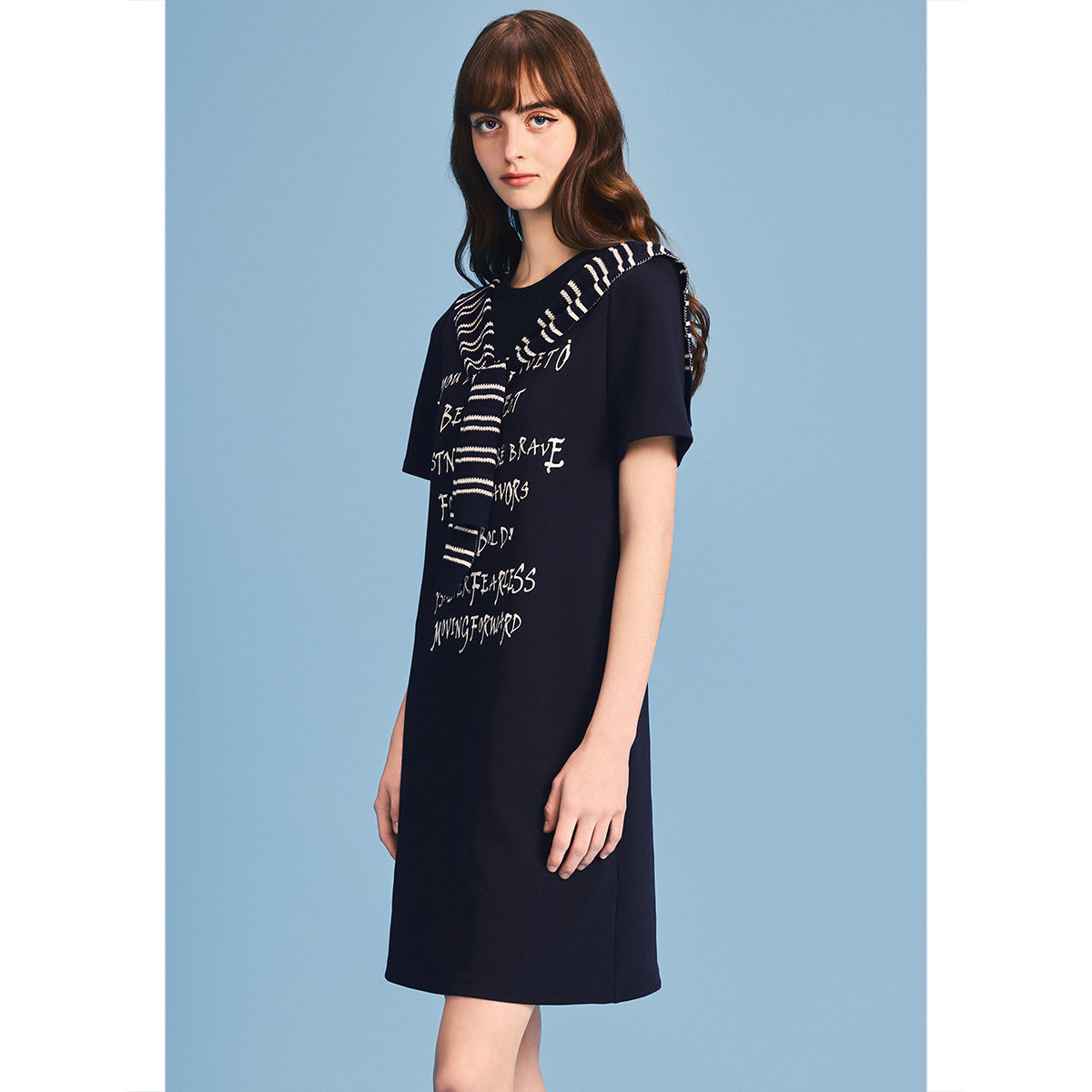 诗篇专选条纹外披披肩宽松印花连衣裙2026夏季 新款