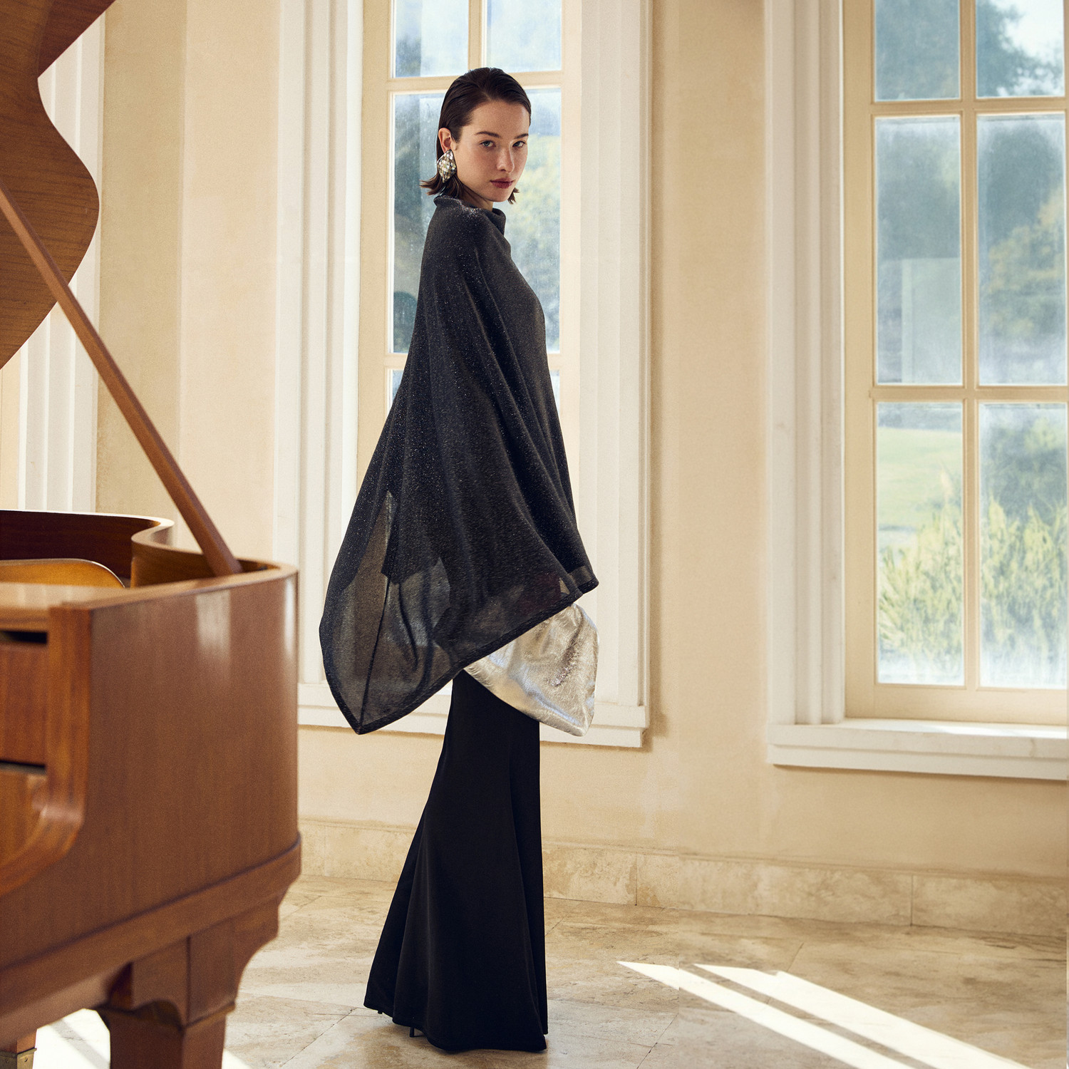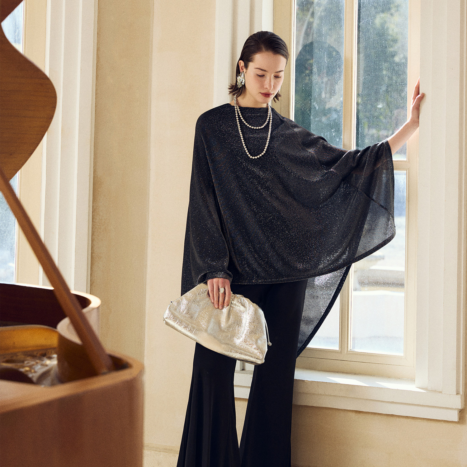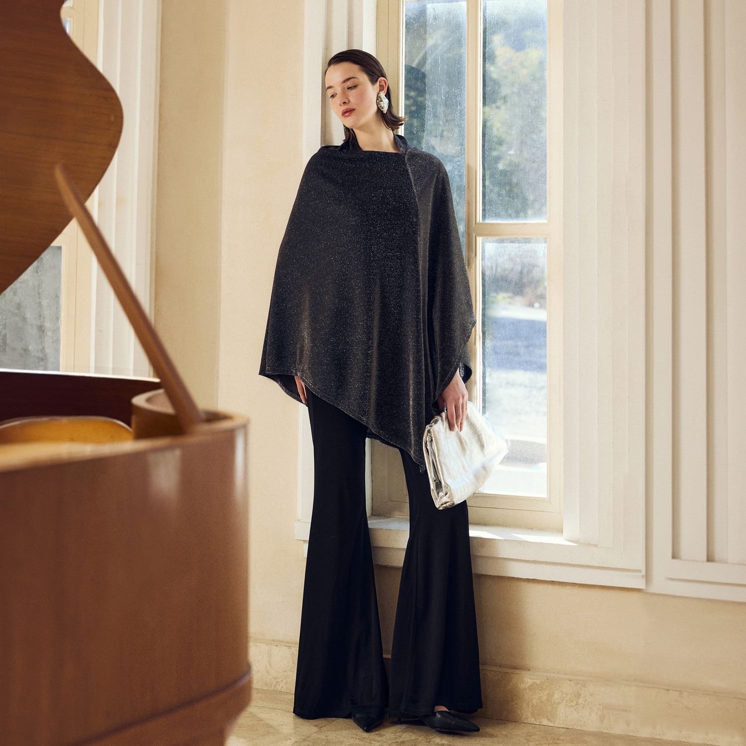 复古松弛感流光罩衫 新款 立裁不对称斗篷2026年春季 上衣 星痕