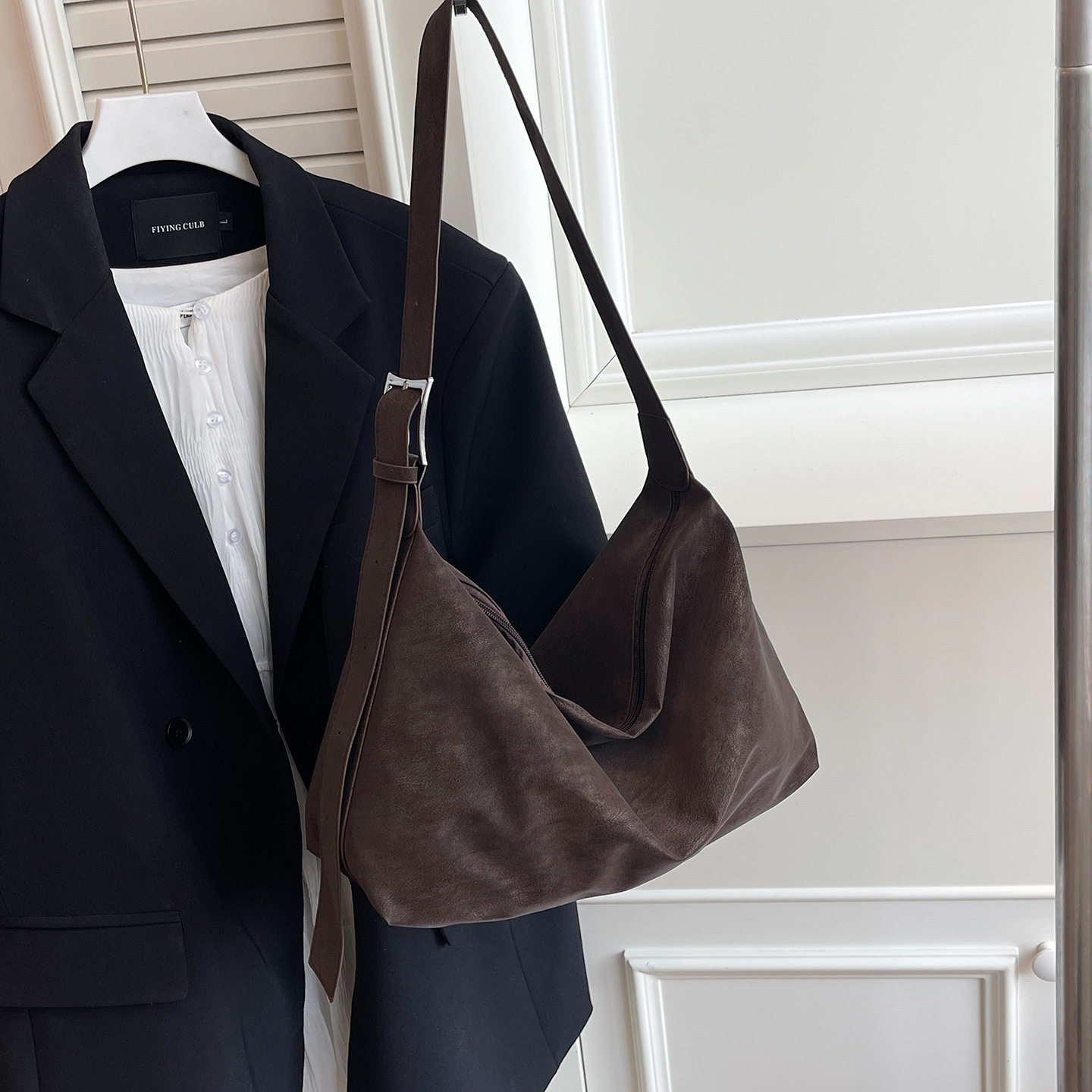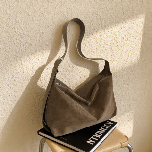 磨砂复古麂皮绒包包女2026新款 百搭腋下托特包 单肩斜挎枕头包时尚