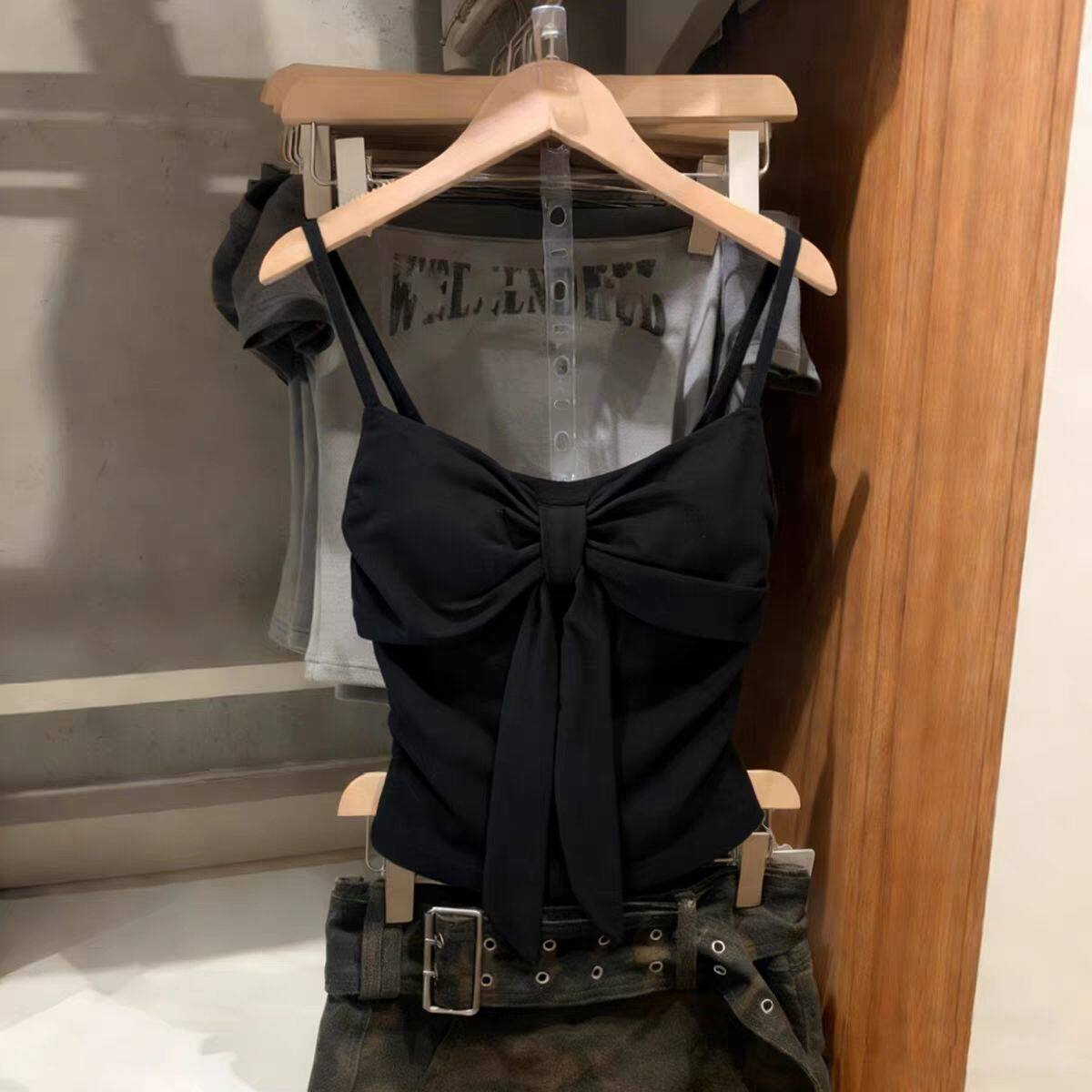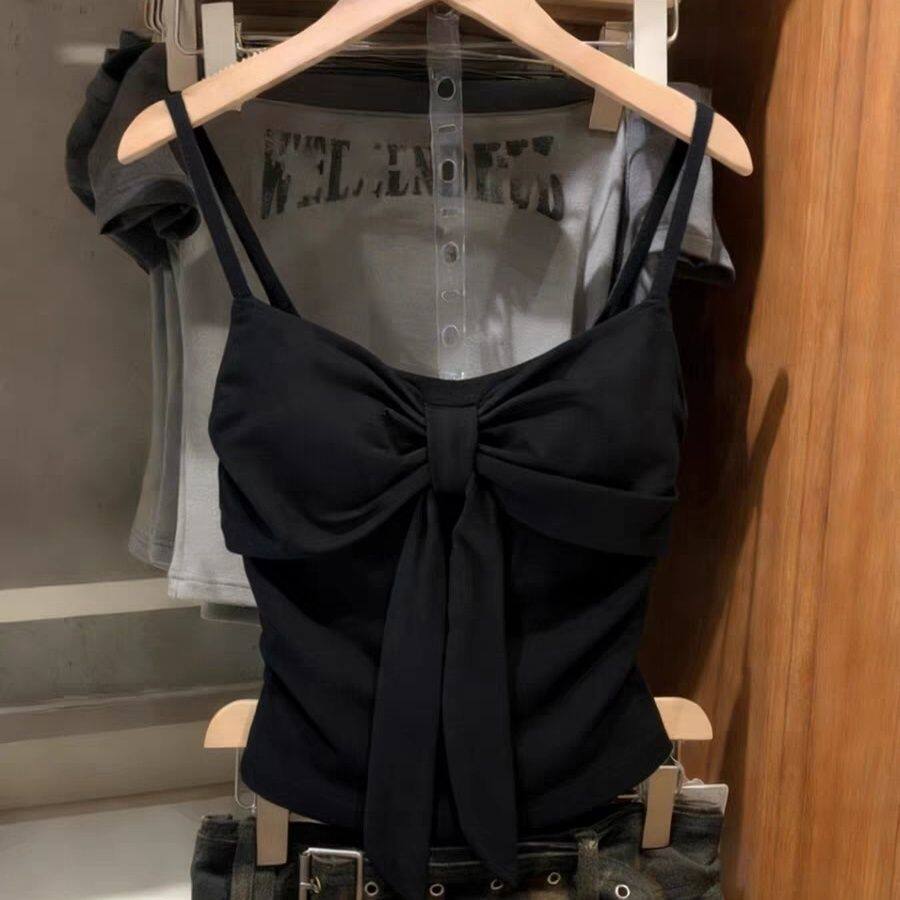 短款 带胸垫修身 上衣 新款 性感甜辣风蝴蝶结绑带吊带背心女2026春季